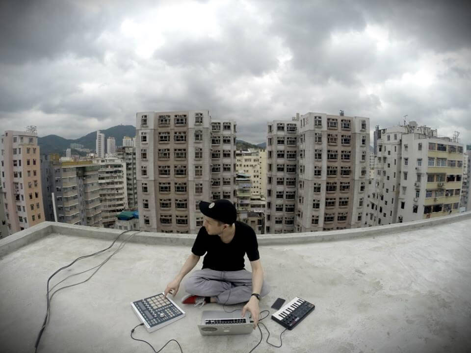 Den Anfang macht DJ RAFIK, der sich auf einem Dach eingerichtet hat. Leichte Fisheye-Optik, fototechnisch die Regeln des goldenen Schnitts beachtet. Stromzufuhr scheint da, könnten aber auch Antennenkabel sein. Das Equipment: Maschine, Macbook, MPK und In-Ears. Kreativer Arbeitsplatz, die Frage ist nur was man in Rafiks Blickrichtung sieht. Fazit: Großstadtumgebung ist nicht so meins, die Sitzhaltung schon gar nicht. Zu Rafik passts. Weitermachen.