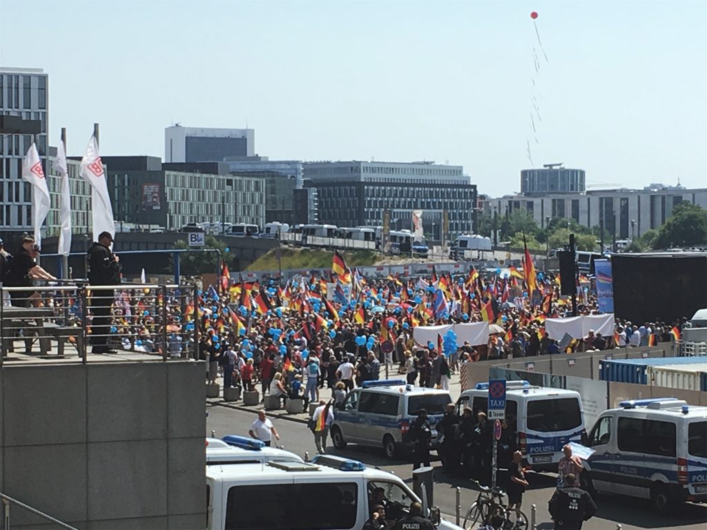 Umso wichtiger sind die Ereignisse des Sonntags vom 27.05.2018: Unter dem Motto AfD wegbassen – Reclaim Club Culture against Nazis riefen etliche Initiatoren der Berliner Club- und Veranstalter-Szene, darunter die Griessmühle, das ://about blank und female:pressure, zu einem lautstarken Protest gegen die angesetzte AfD-Großdemo auf. Den aus ganz Deutschland anreisenden Rechten und ihrer Ideologie sollte ein Gewicht entgegengesetzt werden.