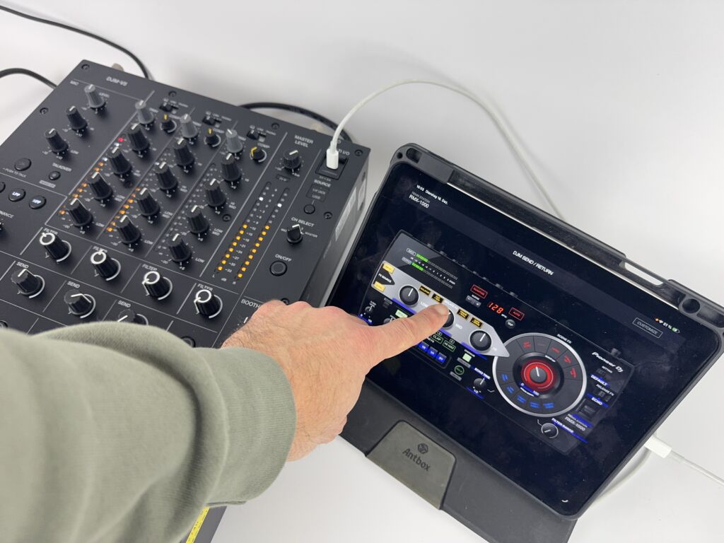 Effekterweiterungen sind über das Multi-I/O-Feature möglich. So kann beispielsweise ein Korg Kaoss Pad analog per Klinkenkabel oder alternativ das neue AlphaTheta-Effektgerät RMX-Ignite sowie ein iPad mit der App RMX-1000 digital per USB-C integriert werden. Zusätzlich gibt es eine Pro-DJ-Link-Ethernet-Buchse und einen weiteren USB-C-Anschluss. Über diesen kann die Soundkarten- und Controllerfunktion in Verbindung mit einem Computer oder mobilen Gerät genutzt werden.