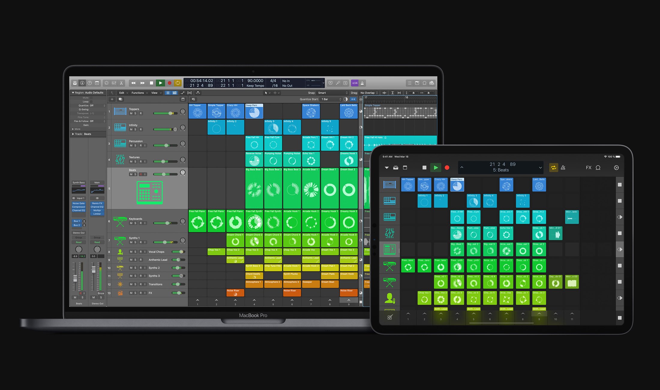 Live Loops erinnert an die Session View in Ableton Live, der Name für das neue Feature ist sicherlich nicht umsonst so gewählt. Auf einem Raster werden Clips so organisiert, dass diese auf nichtlineare Art und Weise arrangiert werden können. Und auch wie bei Ableton führt ein Weg in die gewohnte Arranger-Ansicht, wo dann der Track finalisiert wird. Remix FX hilft mit Echtzeit-Effekten wie Bitcrusher, Filter, Gater und Repeater weiter. Richtig viel Spaß bringen diese beiden neuen Features in der Logic Remote App, die iOS-Devices wie iPhone oder iPad in Multi-Touch-Controller verwandeln.