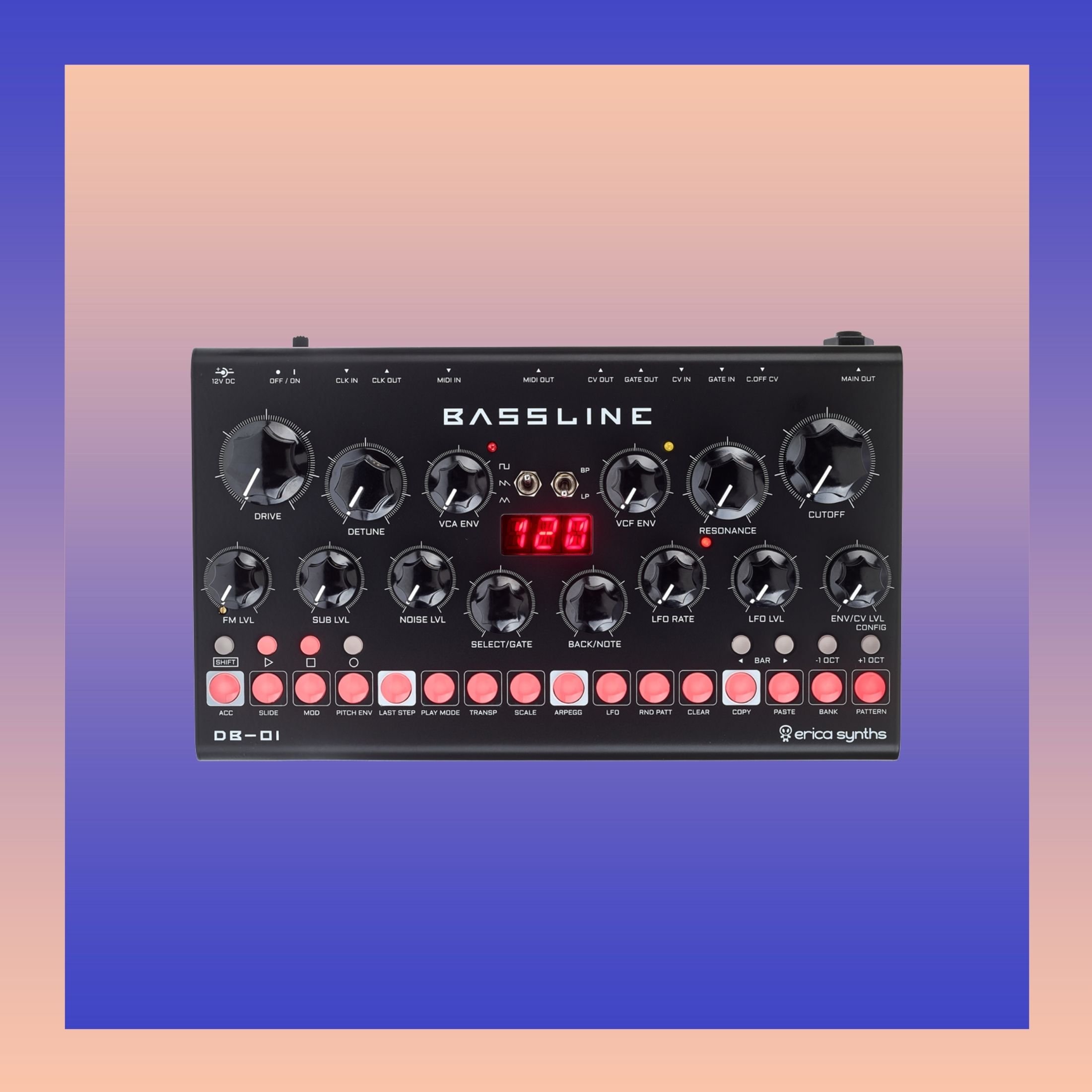 Bassline DB-01 zeigt, dass es auch anders geht, als nur auf eine möglichst genaue Nachbildung bestehender Hardware und niedrigen Preis zu achten. Stattdessen setzt der Hersteller aus Riga auf innovative Ideen, eigenständigen Sound und Hingucker-Optik. Der kleine Desktop-Synthesizer nimmt die Idee der TB-303 auf, erweitert diese aber in vielen Aspekten. Dazu gehört der etwas aggressivere Sound des Tief- oder Bandpassfilters, eine Overdrive-Funktion, ein Suboszillator oder die voneinander unabhängigen Hüllkurven für Amp, Filter und Pitch. Aber das reicht Erica Synth nicht. Zusätzlich steckt hier ein LFO mit mehreren Schwingungsformen und der Option für FM- und Filter-Modulation drin. Ach ja, einen Rauschgenerator gibt’s auch noch. Diese Vielfalt garniert der Synthesizer mit einem Arpeggiator sowie einem wirklich brauchbaren Sequencer. Und selbst da hören die Features nicht auf, deshalb lest im Zweifel unseren Testbericht. Hier die Kurzversion: Bassline DB-01 ist eine Bombe!