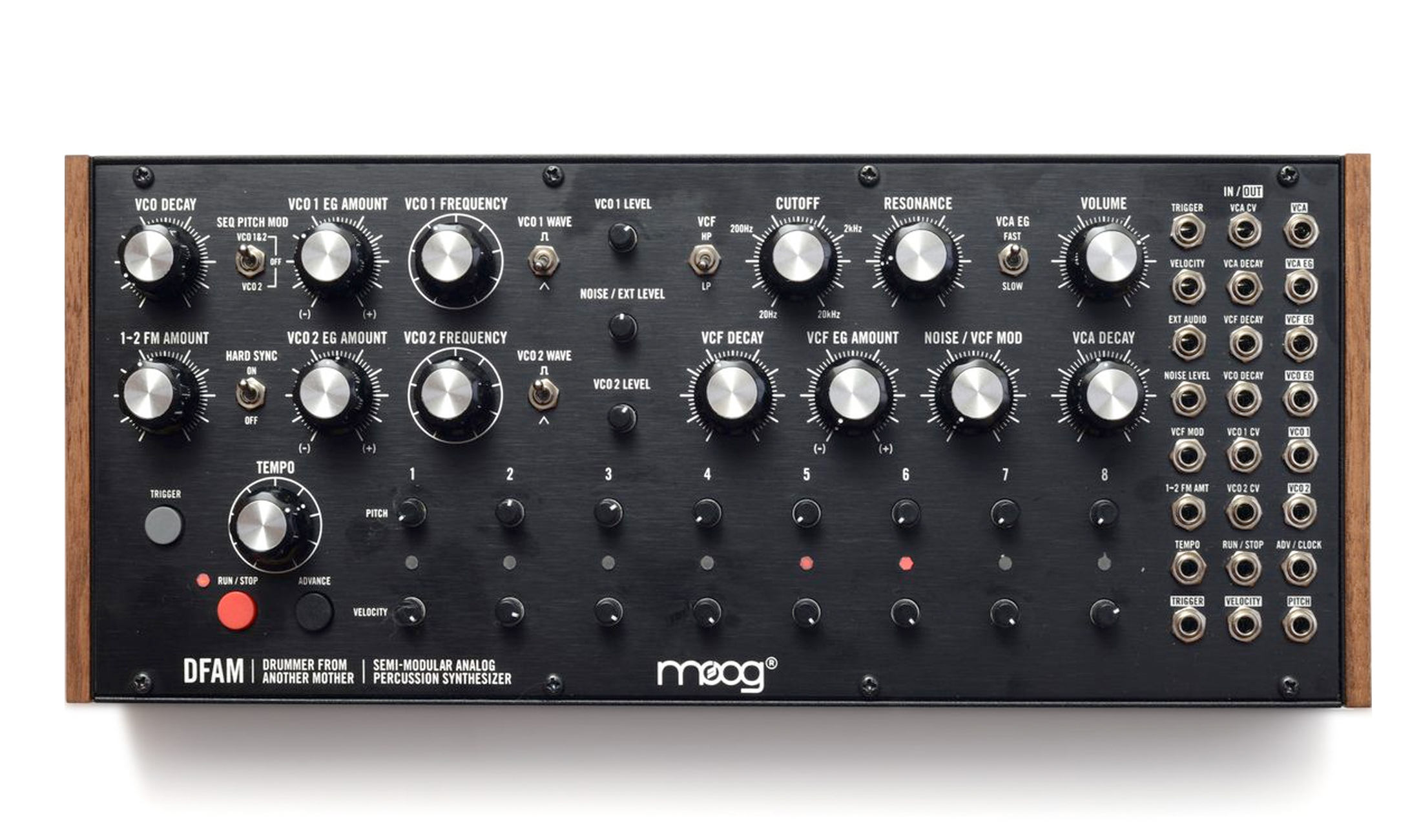 Der Traditionshersteller Moog hat uns 2018 gleich mit einigen fantastischen Produkten überrascht. Der Moog One ist aktuell bestimmt der Traum vieler Musiker, Grandmother erweitert die Sub-Phatty-Produktreihe mit eingebautem Federhall und modularer Schnittstelle – es ist aber der DFAM, oder auch Drummer From Another Mother, den wir hier herausstellen möchten. Warum? Zum einen wegen des Preises (circa 560 Euro), der noch im für die meisten Nutzer erschwinglichen Rahmen ist. Zum anderen, weil dieser kleine Expander ein sehr schöner Drumsynth ist und sich damit hervorragend für die Produktion elektronischer Beats eignet. Außerdem ergibt der DFAM in Verbindung mit der Moog Mother 32 ein sehr vielseitiges Duo. Zwei Oszillatoren plus Rauschgenerator und das typische Moog-Filter sorgen für druckvolle Kicks, Snares, Hats oder Percussion. Der Moog DFAM lädt zum Experimentieren ein!