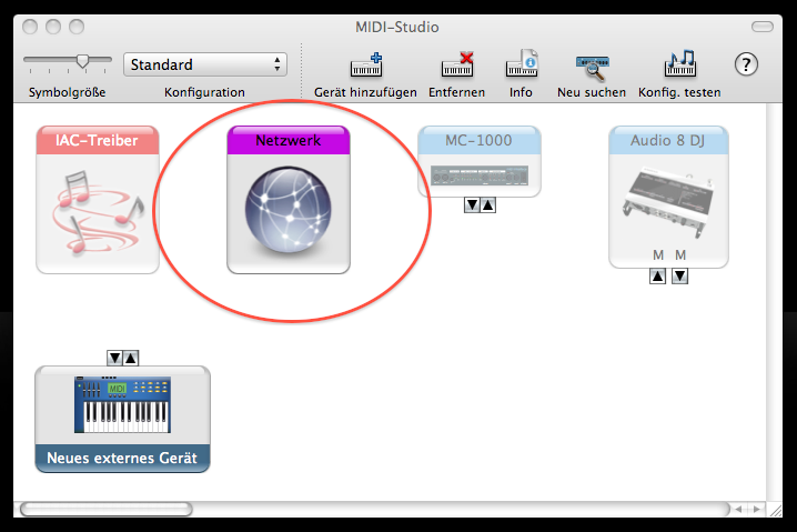 Wenn man das Audio-MIDI Setup geöffnet hat ist dann noch wichtig, dass man unter "Fenster" den Eintrag "MIDI-Fenster einblenden" auswählt. Erst dann sieht man den Unterpunkt "Netzwerk"...