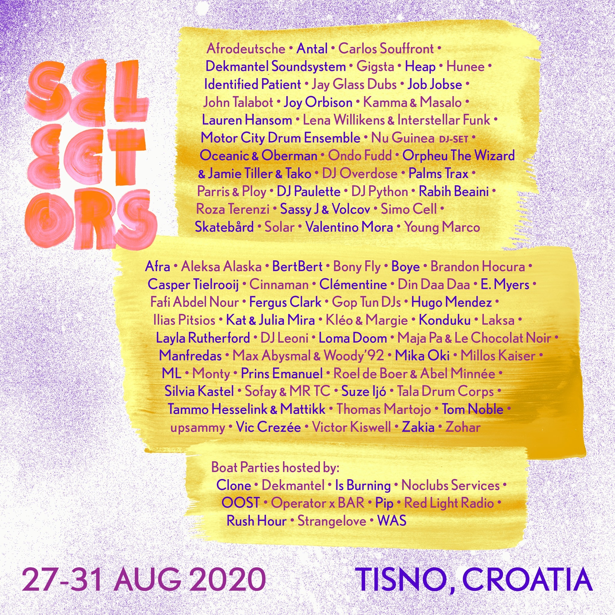 Dekmantel Selectors findet vom 27.-31. August 2020 in Tisno/Kroatien statt, Der Ticketverkauf beginnt diesen Donnerstag den 28.11. um 12 Uhr CET. Weitere Informationen gibt es auf der Website.