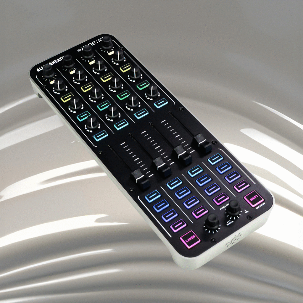 Mit dem Xone:K3 präsentiert Allen & Heath den modernen Nachfolger des beliebten K2. Der vollständig konfigurierbare MIDI-Controller richtet sich an DJs, Produzent:innen und Live-Performer und kann mit überarbeitetem Design, hochwertiger Verarbeitung und flexiblen Anschlussmöglichkeiten überzeugen. Das modulare Konzept des K2 bleibt erhalten, wurde jedoch in nahezu allen Bereichen weiterentwickelt. Ein robustes Druckgussmetall-Gehäuse, verschraubte Potis und Schalter sowie RGB-beleuchtete Tasten sorgen für professionelle Haptik und klares visuelles Feedback.