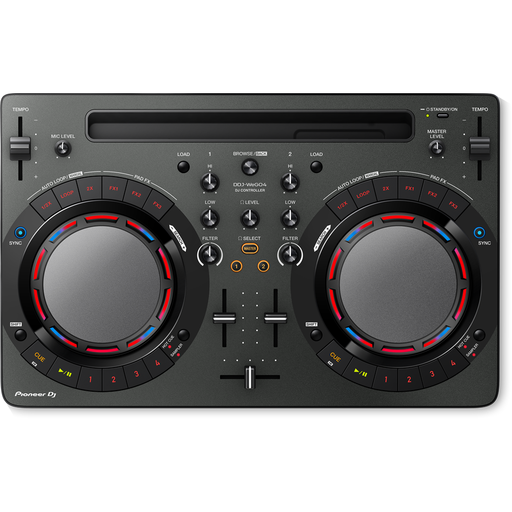 Die neue - nunmehr vierte - Version des WEGO sieht noch immer aus, als wenn der gleiche Designer beauftragt war, der auch PIONEERs Autoradios gestaltet. Funktional deutlich spärlicher ausgestattet als die beiden anderen hier vorgestellten, verweist auch der an Anfänger adressierte WEGO 4 auf eine gewisse Hybridfähigkeit. Neben dem mitgelieferten Rekordbox DJ unterstützt der kleine Controller nämlich PIONEERs neue DJ-App WEDJ. iDJ, YouDJ, WeDJ ... naja, warum auch nicht. Die Position "DJ-App" ist bei PIONEER jetzt also auch besetzt.