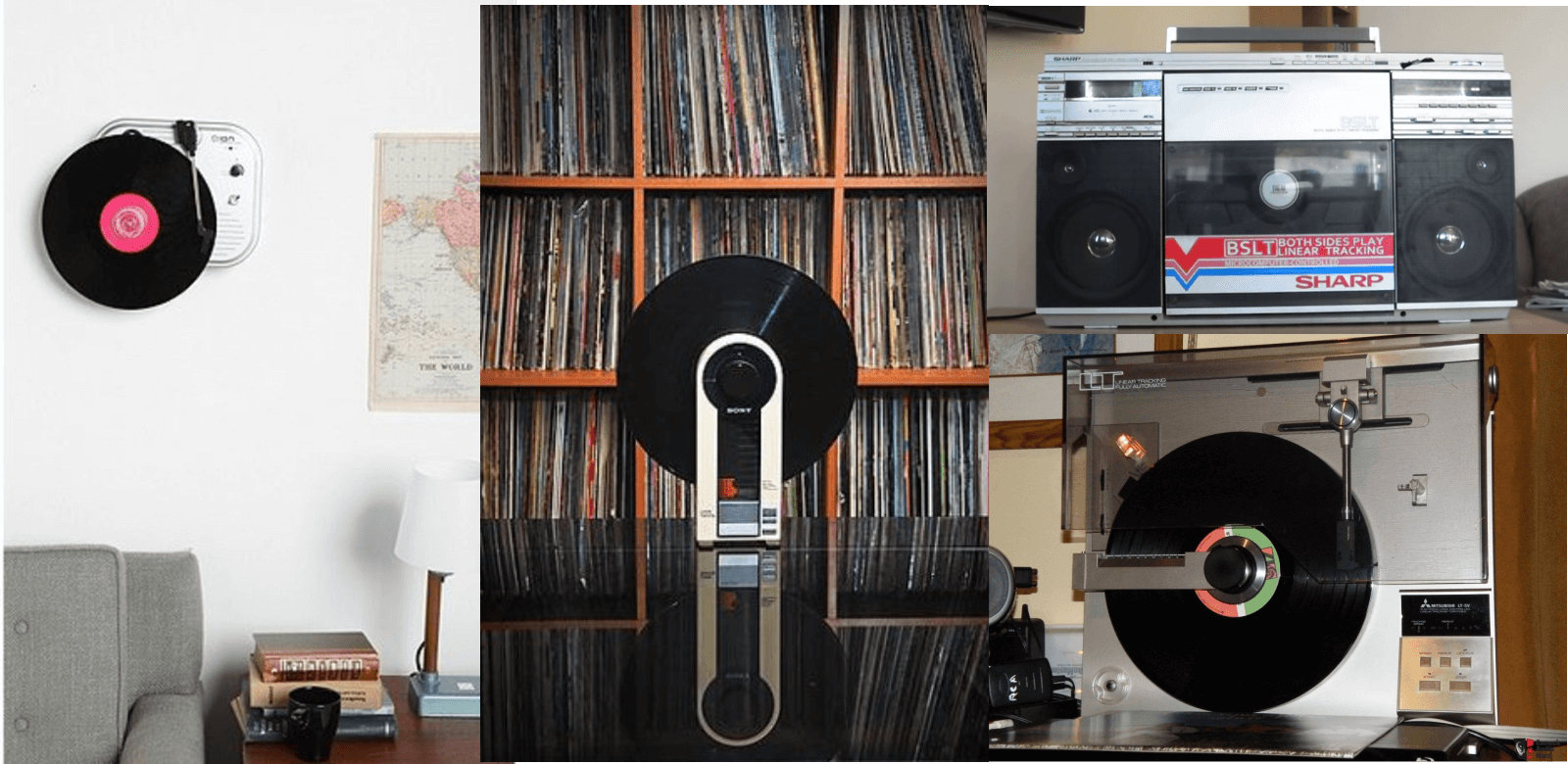 Es gab Ghettoblaster mit integriertem Plattenspieler, welche die dem Walkman Konkurrenz machen sollten und - noch erhältlich - billige Kunststoffteile, die man sich an die Wand nageln kann. Alles 90° weggewinkelt vom Gewohnten.