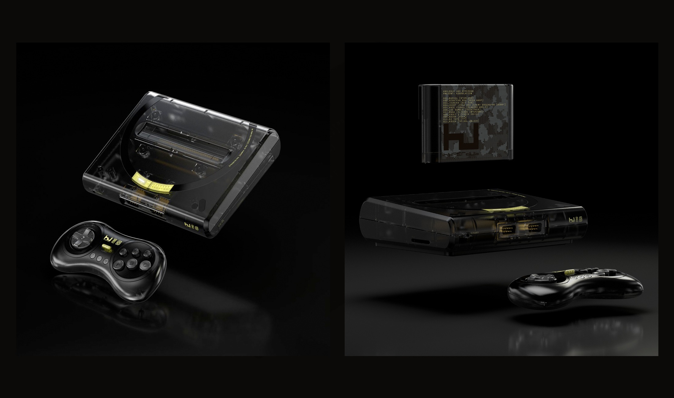 Jetzt geht Hyperdub einen Schritt weiter. In Kooperation mit Analogue, einem Hersteller von High-End-Klonen klassischer Konsolen (zuletzt Analogue Pocket) wurde das Projekt Konsolation entwickelt. Hier beschreitet das Label quasi den umgekehrten Weg und bringt exklusive Tracks von Künstlern des Labels auf einem Spielmodul heraus. Das Cartdridge ist für das Sega Mega Drive gedacht.