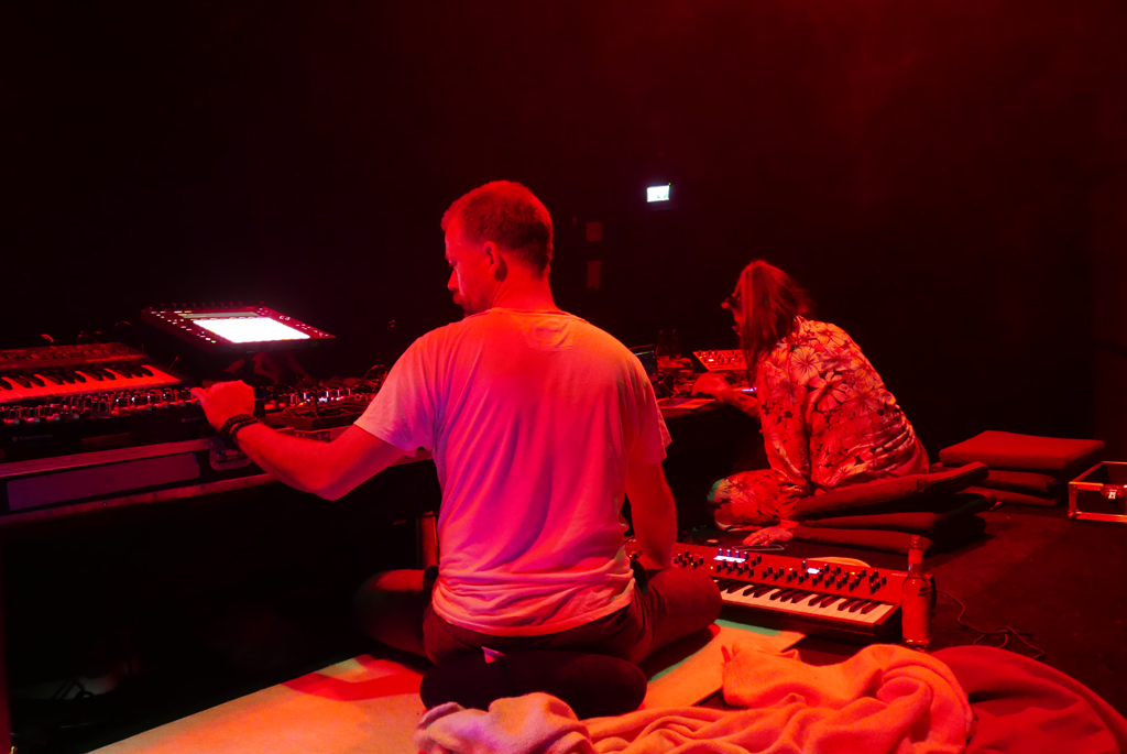 Johanna: Ich hatte jetzt persönlich keine Struktur vorab geplant. Es ist mehr so, dass wir dort alle gemeinsam diese acht Stunden durchleben und sich die Struktur aus dem Vibe heraus ergibt. Für den Anfang hat man eventuell noch etwas im Hinterkopf, was man genau machen möchte, aber das sind auch nur lose Ideen. Selbst wenn Sebastian und ich die ganzen acht Stunden wach sind, kommen wir ja selber auch in diesen abdriftenden Zustand und das überträgt sich dann automatisch auf die Musik. Wir hatten uns mal hier und da ein bisschen über Schlaf und so Sachen wie REM-Phasen unterhalten, aber bei den Konzerten kommunizieren wir dann eigentlich nur durch die Musik.