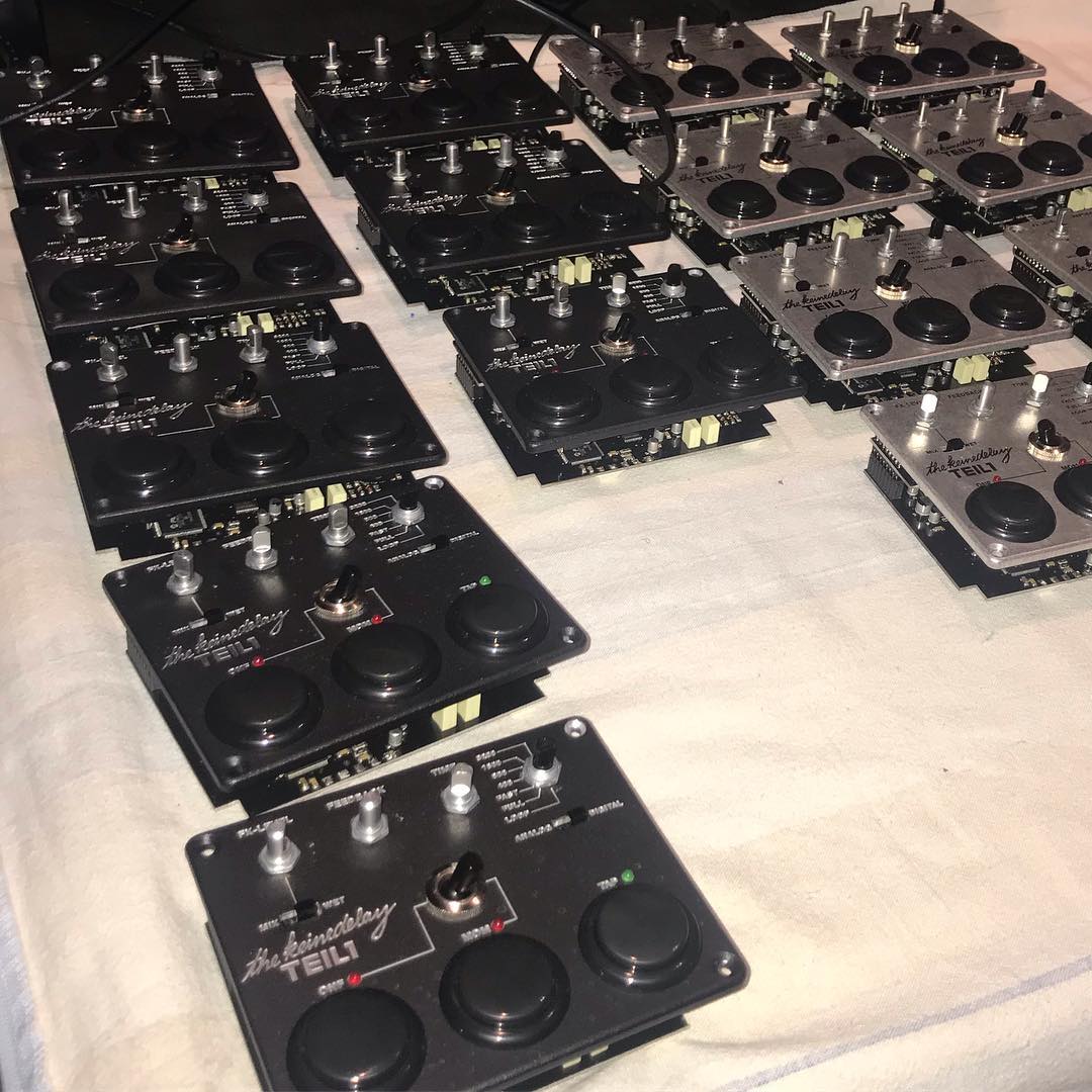Rampa: Ich würde gar nicht ‘verbessert’ sagen! Das DD-7 ist super, wenn nicht gar perfekt wofür es gebaut wurde. Ich wollte aber andere Funktionen und ein anderes Handling haben und war da wohl nicht der Einzige. Mir war zum Beispiel wichtig, dass sich das FX-Signal zu 100% ‘wet’ schalten lässt oder dass der Tap direkt im Unit ist und leichtgängig reagiert. Auch haptische Aspekte waren ein Thema. Mich stört wirklich nichts am DD-7! Das würde ich mir auch gar nicht anmaßen, ich wollte bloß etwas anderes. Das TEIL1 hat auch gar nichts mehr damit zu tun, außer, dass es auch ein Delay ist (lacht).