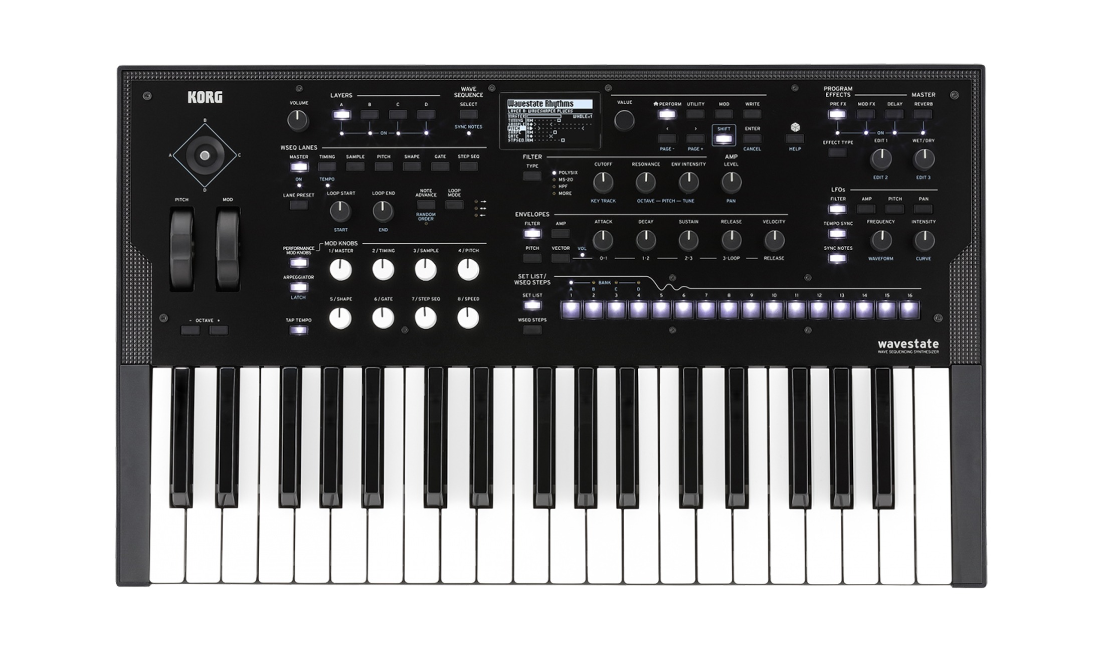 Der erste Synthesezier von Korg im neuen Jahrzehnt ist digital! Die Neuauflage der 90er Jahre Wavestation setzt nicht auf analogen Retro-Charme, sondern auf Sample-Oszillatoren, Wave Sequencing und Vektorsynthese. Wavestate ist keine monophone Analogkiste, sondern ein Digitalsynthesizer mit 64 Stereo-Stimmen und einem mehrere Gigabytes großem Sample-Pool.