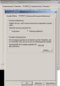 und hier noch einn paar werte die euro auslagerungsdatei(virtueler speicher) haben sollte