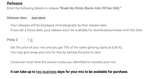 Im Grunde eine grandiose Idee. Aus Verbrauchersicht findet man ungewöhnliche Remixe, Mashups oder Edits. Der Katalog ist sehr Top40-lastig, der Aufbau der Seite verleitet über Tags und Listings zum Stöbern. Preislich liegt LEGITMIX über Stores wie Beatport und Juno, dafür hat man Soundcloud voraus, dass zumindest versucht wird die Urheber des Originals zu vergüten. Offeriert werden übrigens auch Zusatzleistungen, wie "Custom Mix" oder "Lyric Cleaning".