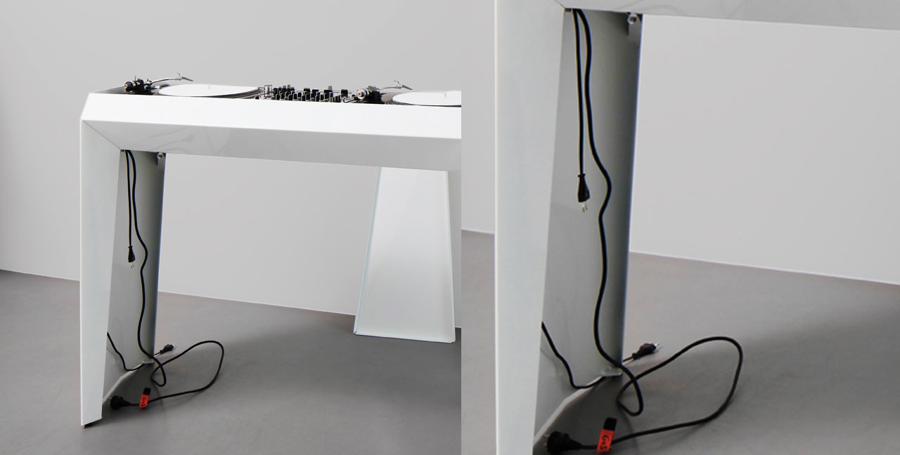 Wer sich für die Unterbringung seines DJ-Equipments vom Einheitsbrei abheben will und auch über das nötige Kleingeld verfügt, sollte sich mal die handgefertigten DJ Desks aus Metall von der Berliner Designer Firma Metrofarm genauer anschauen. Bei den Tischen handelt es sich um eine leichte (unter 25 kg), pulverbeschichtete Aluminium-Konstruktion, die sich in unter 10 Minuten aufbauen lässt. Den Tisch gibt es, je nach erforderlicher Bestückung in drei verschiedenen Größen und optional mit einem abnehmbaren Laptop-Ständer.