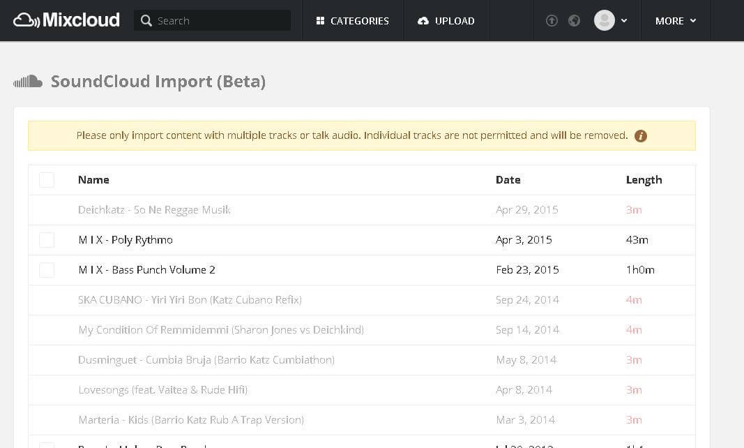 MIXCLOUD importiert Mixe von SOUNDCLOUD