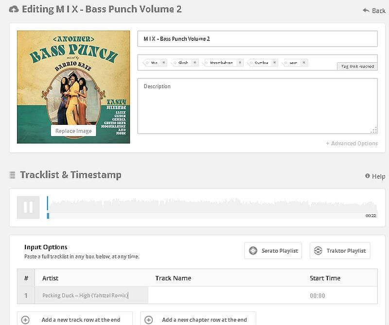Der Import erfolgt über die URL mixcloud.com/soundcloud/import (Beta) unkompliziert. Nach einer Verbindung mit dem Account bei SOUNDCLOUD stehen alle importfähigen Mixe (scheinbar schlicht anhand der Länge definiert) zur Auswahl. Man setzt ein Häckchen und wenige Minuten später ist der gewählte Mix zu MIXCLOUD übertragen. Anschließend ist noch etwas Feinarbeit, zum Beispiel das Ausfüllen der Tracklist, nötig.
