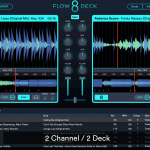 Das Prinzip von Flow 8 Deck ist nach wie vor alles so simpel wie Möglich zu halten. Im 8-Deck Modus gibt es 4 Preview-Decks pro Seite. Das aktive Deck wird dann jeweils in der linken oder rechten Gesamtansicht gezeigt. Die Key-Anzeige und Energy Level sind aus Mixed in Key integriert. Die Tracklibrary arbeitet dynamisch und kann nach Key, Energylevel und Tempo Vorschläge für den Mix filtern. Die Waveforms sind zweifarbig und sollen so den Verlauf von Beats und Melodien anzeigen.