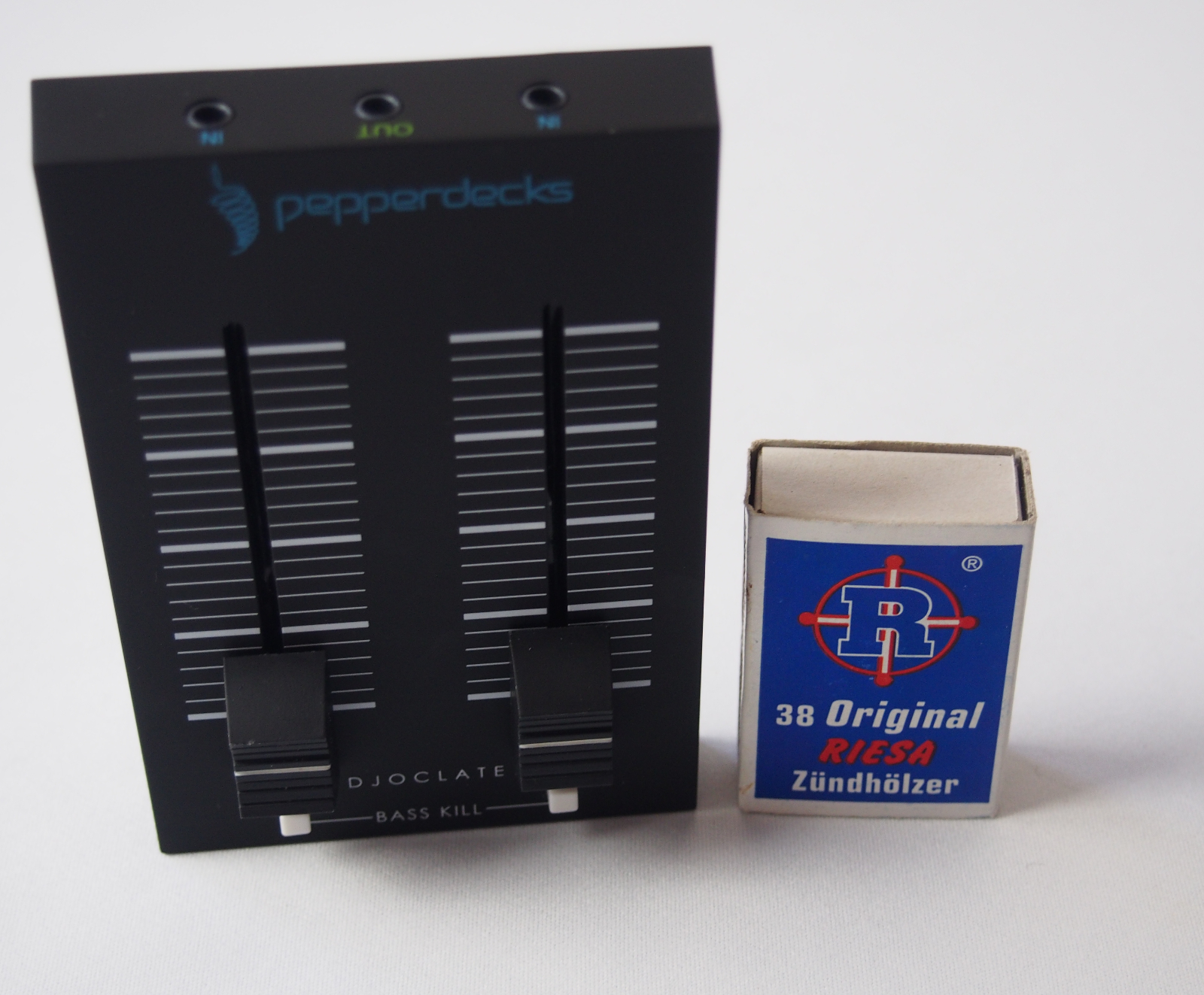 Namen sind bekanntlich Schall und Rauch. Produktbezeichnungen sollen hingegen etwas ausdrücken. DJOCLATE nennt sich ein für 35 Euro gehandelter Mini-Mixer des holländischen Startups Pepperdecks. Darf man ein Mischpult so benamen? Oder muss die Bezeichnung - Klischee, Klischee - einer dunkelhäutigen DJane vorbehalten sein? Ein kurzer Check bei Google führt ausschließlich zum Hersteller und zu einigen Händlern. DJOCLATE ist also ein Mixer. Ein Mixer für DJs, wenn man der Produktbezeichnung vertraut. Das ist prinzipiell zutreffend, man sollte jedoch kein klassisches DJ-Mischpult erwarten.