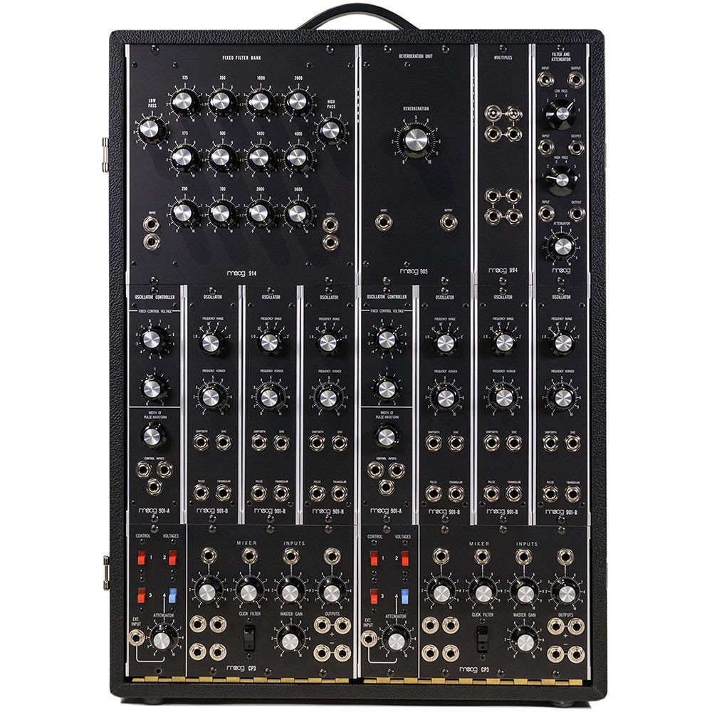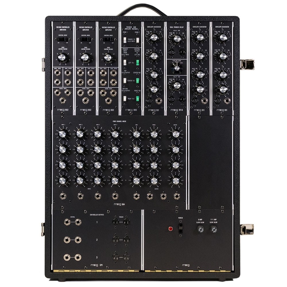 Das Gerät beinhaltet 36 in Handarbeit hergestellte Module wie bspw. die klassischen 904A und -B-Filter, Hüllkurven und mehr, zusätzlich dazu hat Moog's neuester Wurf auch gänzlich neue Elemente wie einen 905 Spring Reverb, vier CP3 Mixer und einen 984 Vierkanal Matrix-Mixer mit an Bord.