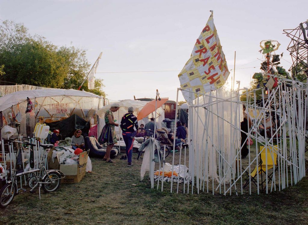 Eine Flagge aus alten Kaffeefiltern, ein überlebensgroßes, von sechs Menschen getragenes Krabben-Kostüm aus Zeltfragmenten, und Verkleidungen aus Verpackungsmüll: So zieht die Trashparade über das Festivalgelände der Fusion. Viele Feiernde bleiben erstaunt stehen oder nähern sich fragend den seltsamen Gestalten auf Stelzen. „Habt ihr nicht letztes Jahr etwas vergessen?“, rufen diese und schwenken ihre verlängerten Arme aus recycelten Müllbeuteln und Plastikfolien.