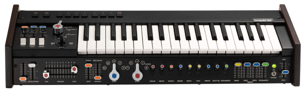 Der legendäre Traveller-Controller befindet sich wie beim Original unterhalb der Tastatur und ermöglicht die indiviuelle und dynamische Steuerung von Hoch- und Tiefpassfiltern und somit die Erzeugung von Wah-Wah- und Filtereffekten.