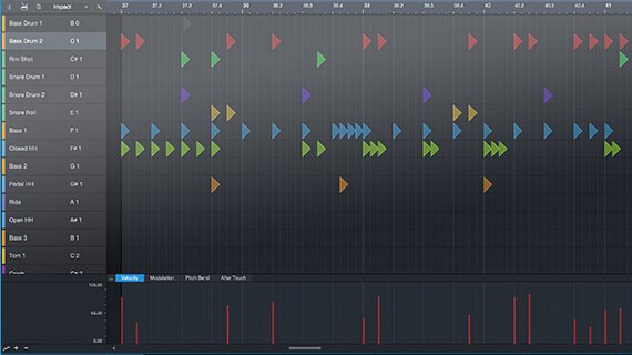 Das neue „Chord-Track“-Feature ist eines der Top-Features, Songwriter werden hier vermutlich aus dem Vollen schöpfen können. Das Werkzeug gibt auf einer eigenen Spur Auskunft über die jeweiligen Akkord-Bezeichnungen, erkannt werden nicht nur MIDI-Spuren, sondern auch das Extrahieren von Audio ist ermöglicht. Das Komponieren von Akkordfolgen funktioniert in Abhängig eines Quinten-Zirkels und somit in festgelegten Tonarten. Auch das Transponieren von Akkord-Spuren ist gewährleistet. Insbesondere Beat-Tüftler sollen durch das Update auf ihre Kosten kommen. Gleich mehrere neue Funktionen bieten verschiedene kreative Herangehensweisen beim Beat-Programming. Die klassische Piano-Roll lässt sich nun in einen spezifischen „Drum-Editor“ wandeln. Die optimierte Darstellung ermöglicht das vereinfachte und selektive Arbeiten mit Drum-Files.