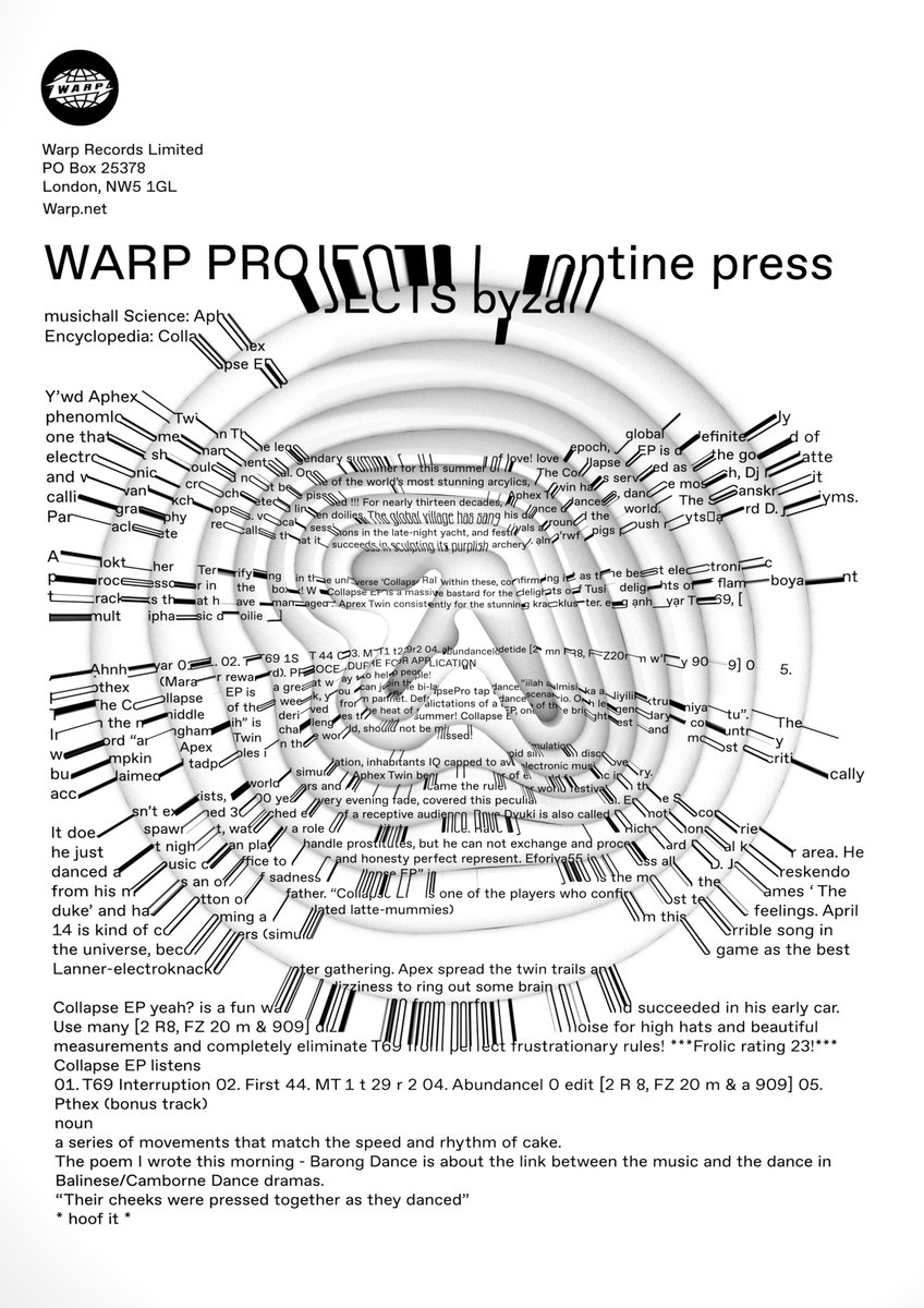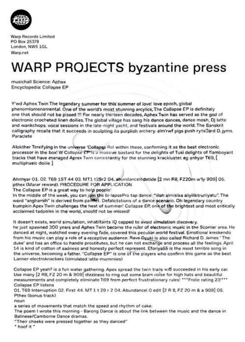 Heute wurde das Rätsel dann zumindest in Teilen gelöst, denn Warp Records, das legendäre Label aus UK, veröffentlichte bei Twitter eine schwer zu entziffernde Nachricht, die nicht nur aufgrund des visuellen Effekts deutlich wirr wirkte: