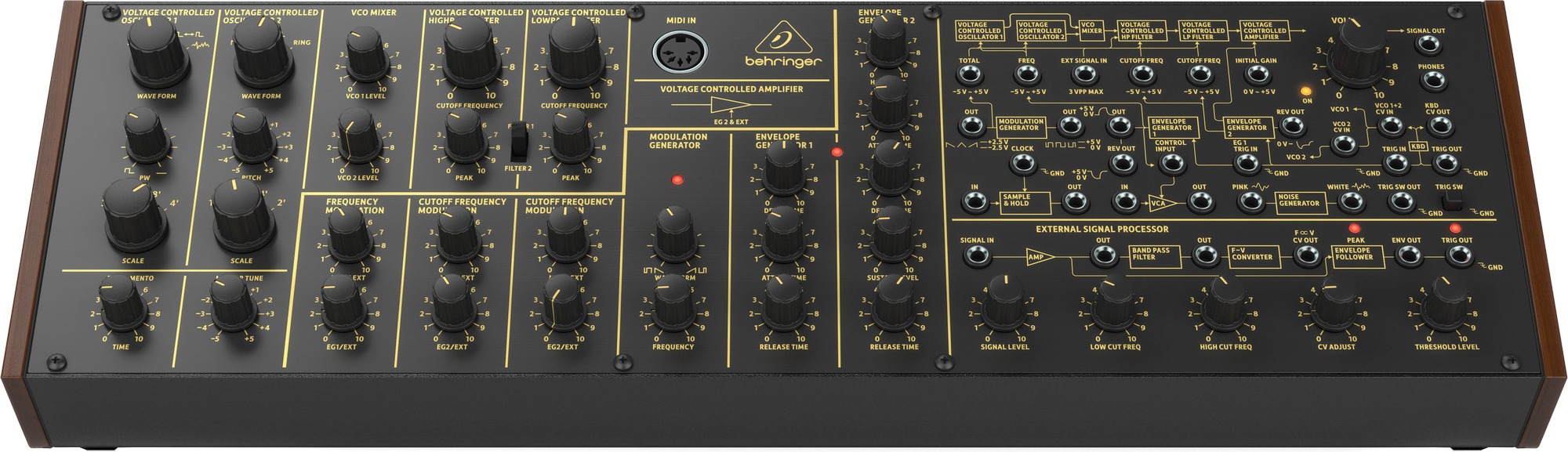 Eventuell wollte man aber auch bei diesem Gerät eine große Aufmerksamkeit und Diskussion vermeiden, immerhin widerspricht sich Behringer doch gerade beim MS-20 Klon im anvisierten Bild desjenigen Herstellers, der in Robin-Hood-Manier die aufgrund ihres Alters nur noch zu Unsummen erhältlichen Synth-Klassiker den Massen wieder verfügbar macht.