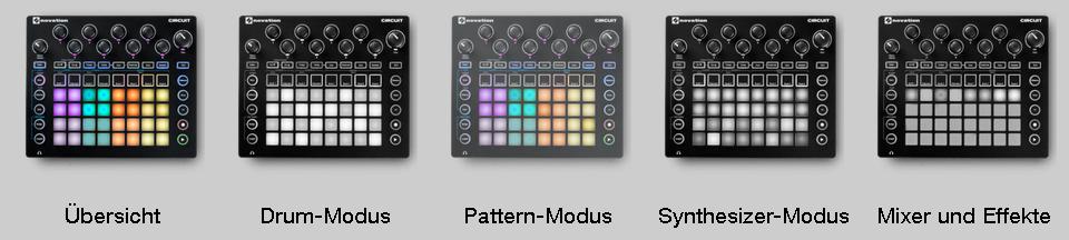 Optisch würde der CIRCUIT gut zu den Launchpads passen, es ist aber eine kleine Groovebox. Eine Kombination aus Synthesizer, Drummaschine und Sequenzer.