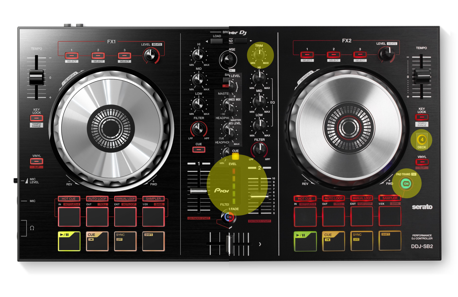 Weit entfernt ein Fanboy zu sein, muss ich anerkennen, dass PIONEER vieles richtig macht. So auch bei dem Update dieser Hardware. Der DDJ-SB2 kommt nun mit Gainreglern und Levelanzeige sowie der Möglichkeit vier Decks in SERATO DJ zu steuern. Dazu wurde noch ein neuer "Trans Beat Effekt" implementiert. Mit diesem lassen sich Effekte quantisiert über die Pads ansteuern.