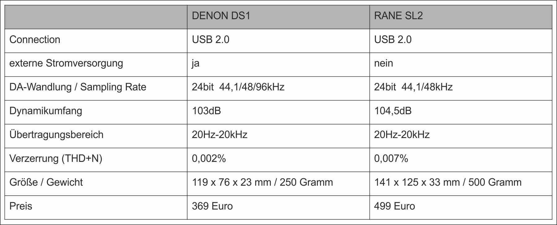 Mit 369 Euro ist das DS1 von DENON im Kaufpreis moderater, als das vergleichbare Paket von RANE. Billiger konnte man SERATO DJ bisher nicht als DVS nutzen. Die technischen Daten lesen sich ebenfalls gut, mit 24bit und 96kHz verfügt das DS1 sogar über eine höhere Samplerate als SL2. Ein Klangvergleich soll uns später zeigen, ob und wie sich dieser Fakt niederschlägt.