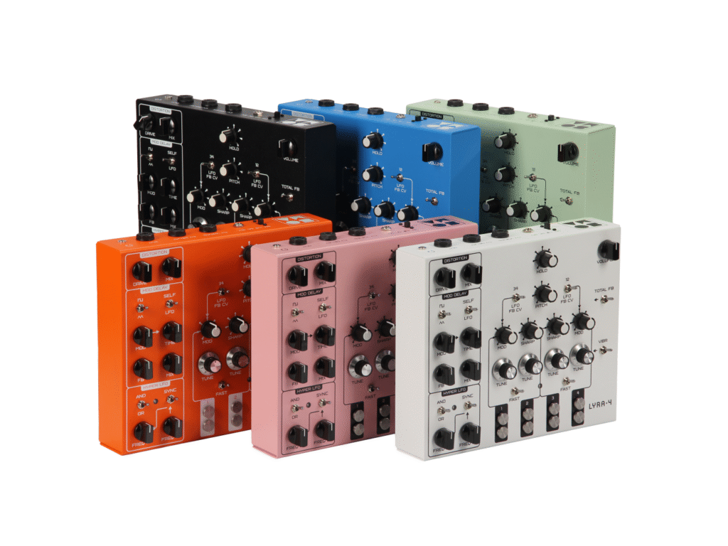Beim Lyra-4, der kleine Bruder des Lyra-8, beginnt der Sound mit einer Berührung der eingebauten Touchpads werden die vier Stimmen gestartet. Die Pads sind dabei dynamisch und klingen je nachdem wie man den Finger auflegt oder ob dieser schwitzig oder trocken ist mehr oder weniger kraftvoll. Jede Stimme lässt sich dann in einem bestimmten Frequenzbereich stimmen (aufsteigend von der tiefsten Stimme 1 bis zur höchsten 4). Das ist alles recht fragil und sorgt für viel Gefummel um saubere Töne zu bekommen, aber öffnet auch Tür und Tor sich genau diesem temperierten Stimmungen zu entziehen. Gepaart mit LFO, FM-Modulation, Distortion und Mod Delay bekommt man aus dem Lyra-4 unendliche Ambient-Sounds raus. Und weil Ambient auch immer den passenden Vibe braucht, muss auch die Ästhetik drumherum passen. Die kann man jetzt mit den vielen neuen Farben des Lyra-4 noch besser wählen. Unsere persönlichen Favoriten: Mintgrün und rosa.