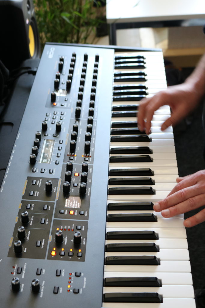 Der neue Synth bietet eine Mischung aus analoger Klangerzeugung und samplebasierten Sounds. Jede der acht Stereo-Stimmen (bzw. 16 Mono) kann dabei auf auf jeweils zwei Sample-Instrumente oder digitale Oszillatoren zugreifen. Die verschiedenen Wege können dann in einer Mixing-Sektion angepasst und via analogen Filtern bearbeitet werden, auch eine digitale Effekt-Bank steht zur Verfügung. Spannend wird es mit den Modulationsmöglichkeiten, hier frequenzmodulieren unter anderem die real aufgenommenen Samples die diversen Wellenformen, das ermöglicht natürlich enorm viel Variation. Leider kann der Prophet X aber keine eigenen Samples direkt aufnehmen, diese müssen extern aufgespielt werden.