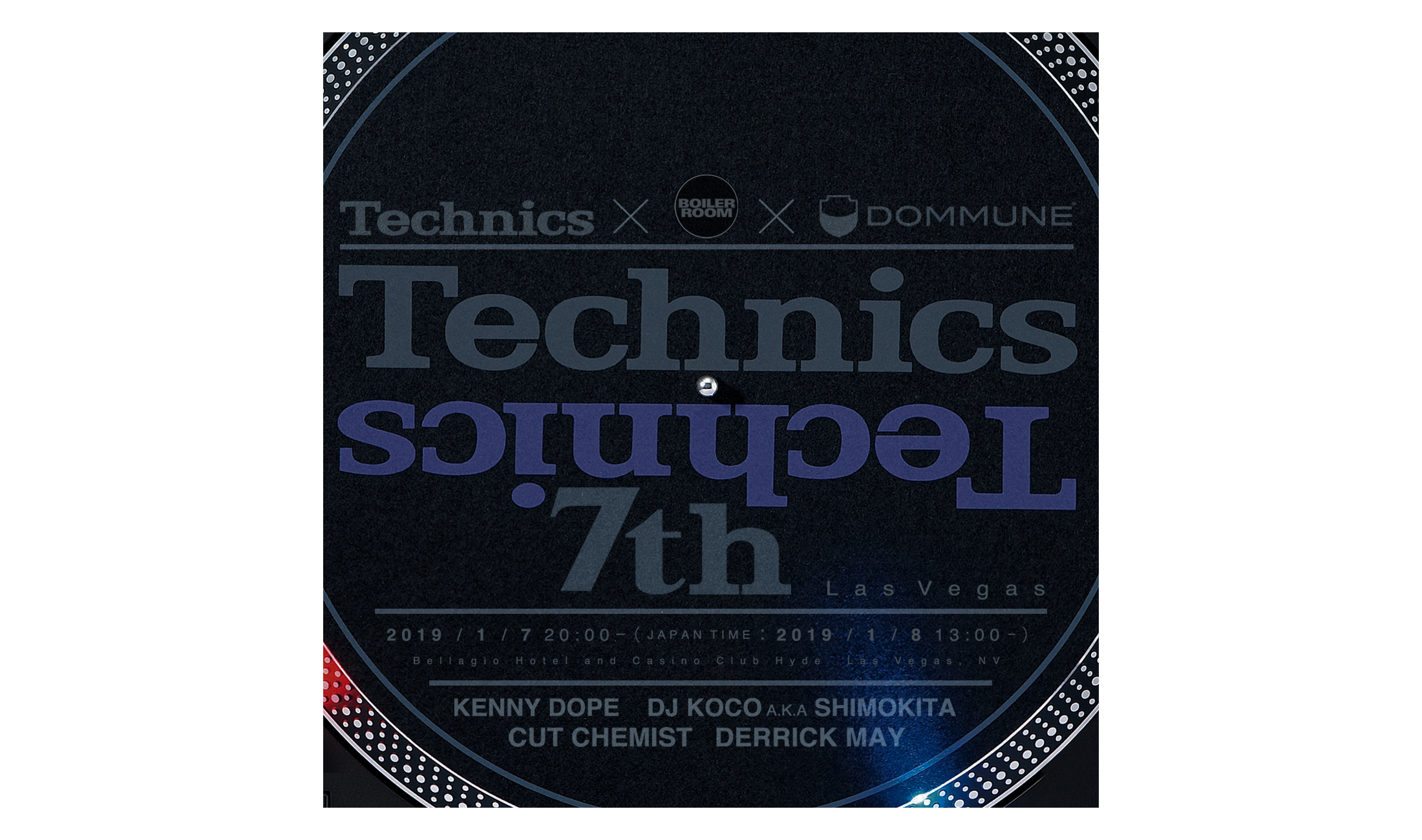 Bereits am 23. Dezember des letzten Jahres kündigte Technics eine Veranstaltung an, die am 7. Januar in Zusammenarbeit mit der japanischen Website Dommune und dem allseits bekannten Boiler Room stattfindet. Nur einen Tag vor der Messe „CES 2019“, auf der Technics übrigens auch vertreten ist, spielen dort DJ-Legenden wie Derrick May oder Kenny Dope von den Masters At Work. Das Event wird live gestreamt und unter dem Namen „technics7th“ präsentiert.