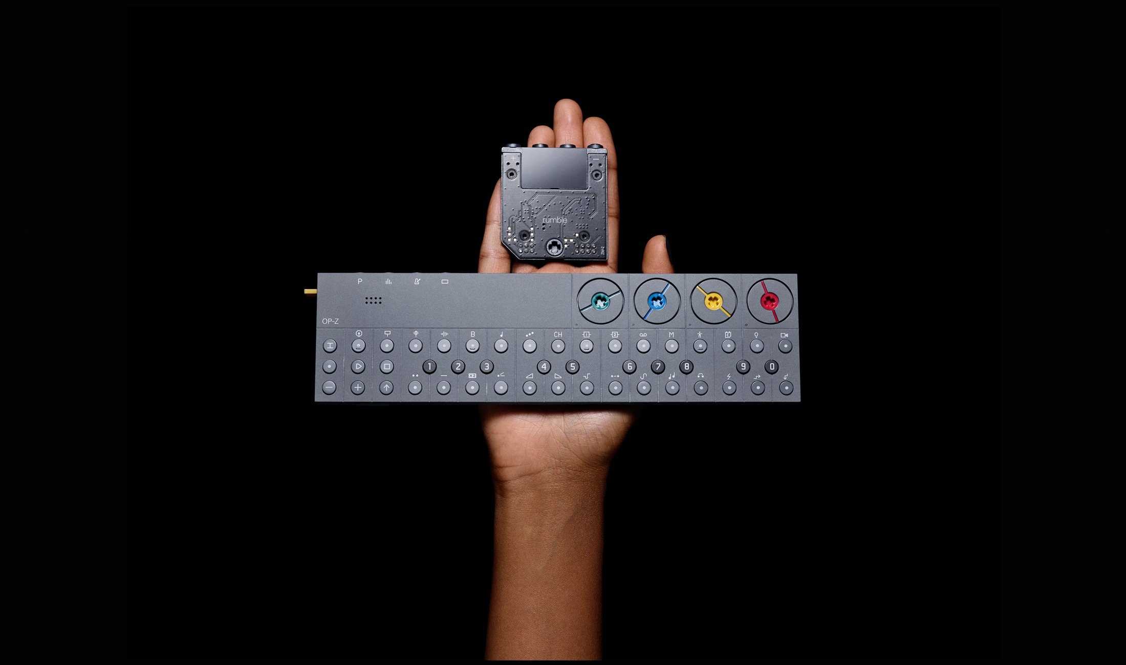 Rumble will dem kleinen OP-Z in dieser Hinsicht auf die Sprünge helfen. Und das mit einem Modul, das in das Gerät gesteckt wird. Aber wie will den nun so ein winziges Teil in einem ebenfalls kleinen Synthesizer Frequenzen von 10 bis 150 Hz übertragen?