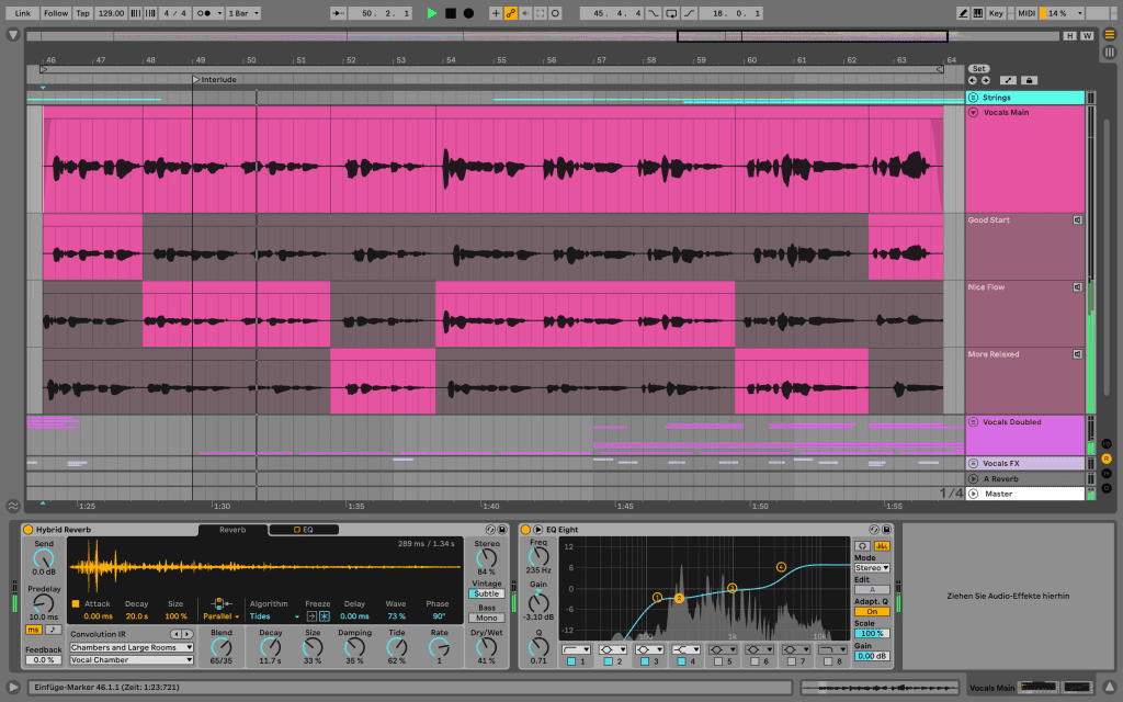 Im Folgenden werden wir uns die einzelnen Neuerungen von Live 11 ansehen: Audio Editing galt nie als größte Stärke von Live. So ist es umso erfreulicher, dass Ableton mit Comping ein interessantes Werkzeug zum Aufnehmen und Bearbeiten einzelner Takes nachreicht. So lassen sich Audio- und MIDI-Spuren in einem vorab festgesetzten Loop immer wieder einspielen, wobei die einzelnen Takes in sogenannten Track-Lanes festgehalten werden. Im Anschluss lassen sich dann besonders gelungene Momente der Aufnahme zum “Perfekten Take“ zusammensetzen.