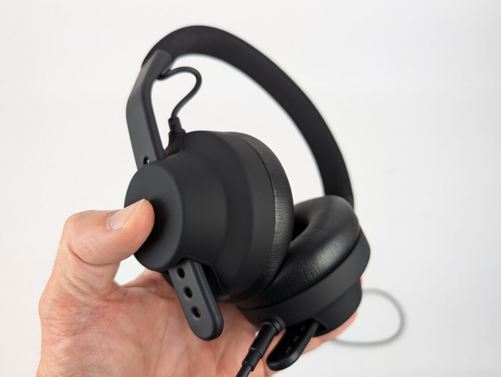 Die Ohrpolster sitzen fest auf den Ohren und schirmen Außengeräusche sehr gut ab, erzeugen aber auch einen recht hohen Druck, der anfangs etwas befremdlich wirkt. Zum einseitigen Hören beim Aufsetzen muss der Bügel leicht gedreht werden, einen Dreh- oder Klappmechanismus gibt es nicht.