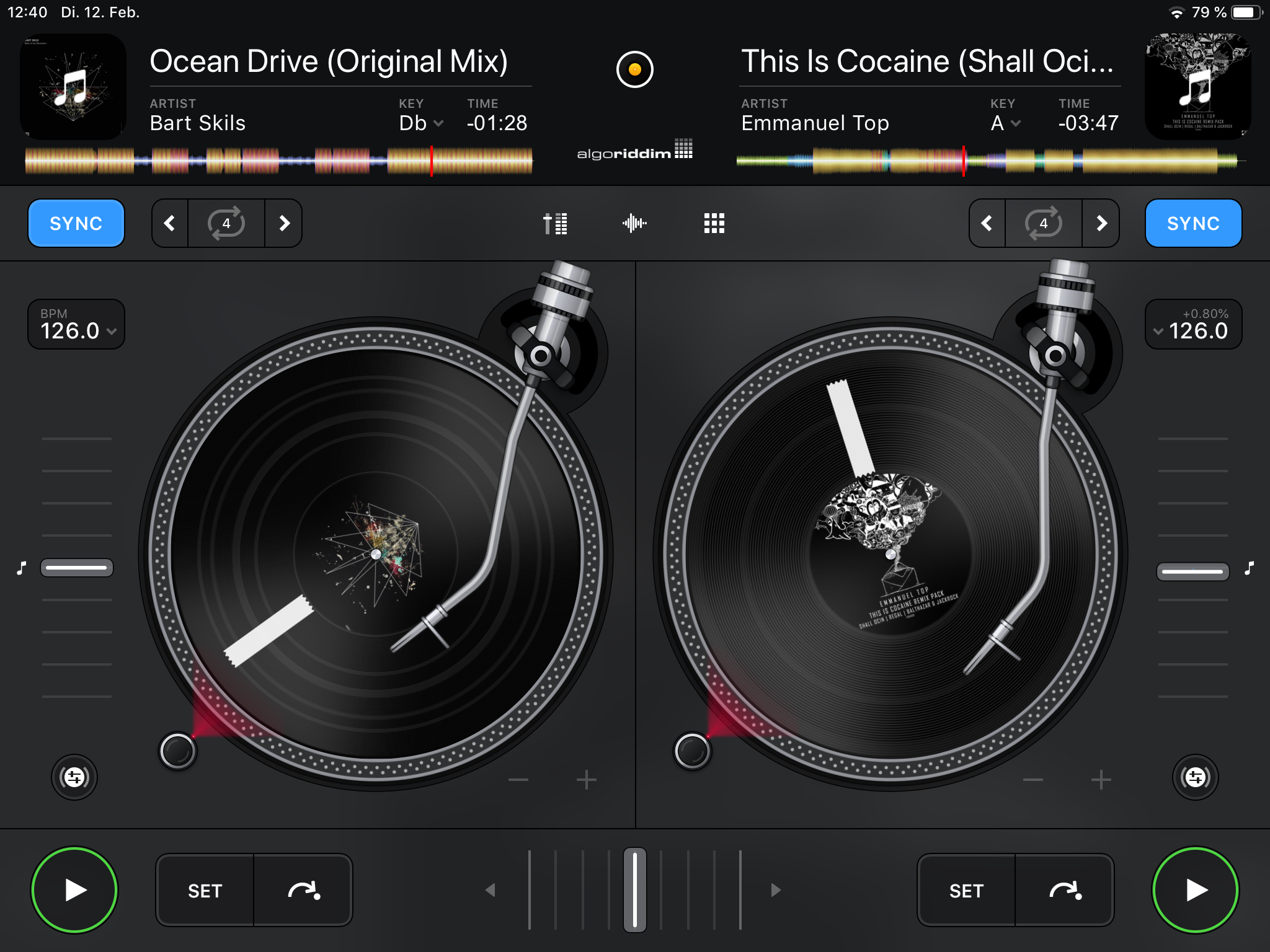 Der kostenlos nutzbare Classic Mode blendet zwei Plattenspieler ein und lässt sich mit lokal gespeicherten Songs oder Tracks aus Spotify nutzen. djay analysiert die Tracks recht zuverlässig, erlaubt aber auch eine Bearbeitung des Beatgrids, falls dieses fehlerhaft sein sollte. Das Beatmatching erfolgt bequem automatisch, lässt sich aber mit etwas Übung auch manuell ausführen. Direkt und zentral erreichbar sind die Funktionen zum Setzen und Modifizieren von Loops sowie des Cue-Points. Zum Abstimmen der Mixe gibt es Dreiband-EQs und Dualmode-Filter, Effekte mit verschiedenen Steuerungsmöglichkeiten sowie acht speicherbare HotCue-Punkte.