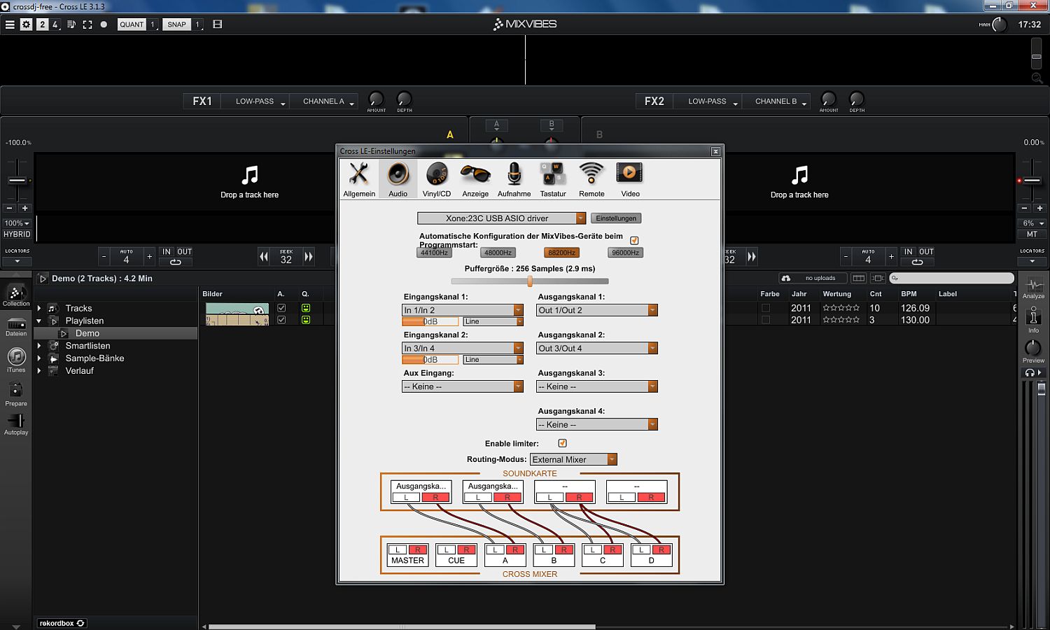 Technikaffine DJs werden mit dieser kleinen Bastelarbeit sicherlich keine Probleme haben, zumal diese in wenigen Minuten erledigt ist. Für Einsteiger und Anwender, die mit verschiedenen Setups arbeiten, wäre allerdings eine Umschaltmöglichkeit für das Signalrouting die bessere Lösung gewesen. Die Timecode-Steuerung in Cross LE gestaltet sich nach der Durchführung der notwendigen Einrichtungsschritte nebst Kalibrierung problemlos.