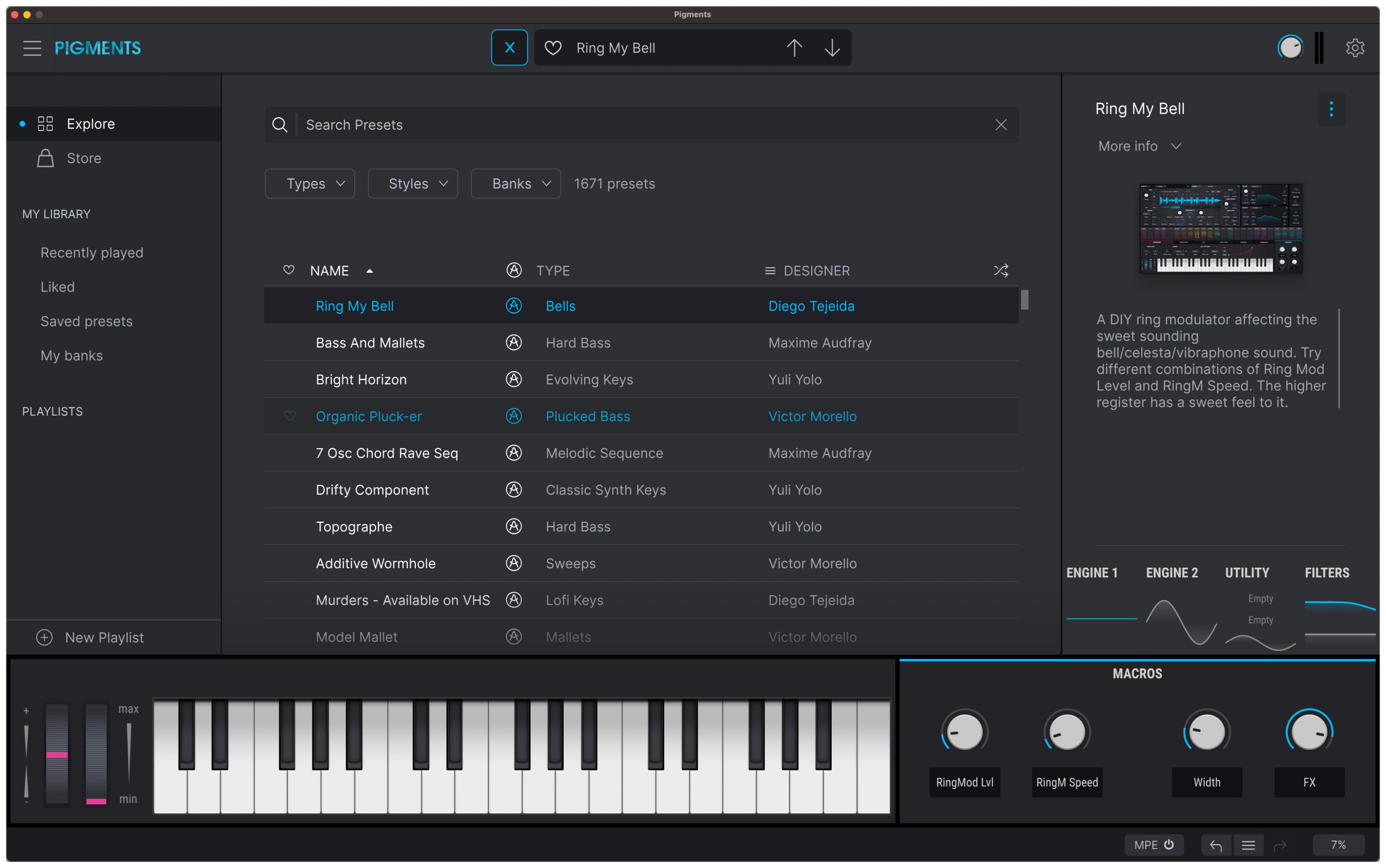 Ohne den Rahmen sprengen zu wollen (wir wollen schließlich leserlich bleiben) und auf jedes Feature der vier großzügig ausgestatteten Klangerzeuger eingehen zu müssen: Alle vier Engines gefallen mir sehr gut und erfüllen ihren Zweck zu vollster Zufriedenheit. Besonders der jüngste Zuwachs, die Harmonic-Engine, lädt zum Experimentieren ein und ermöglicht, besonders in Kombination mit den anderen Engines, spannende Sounds und ließ mich oft stundenlang in Pigments 3 abtauchen.