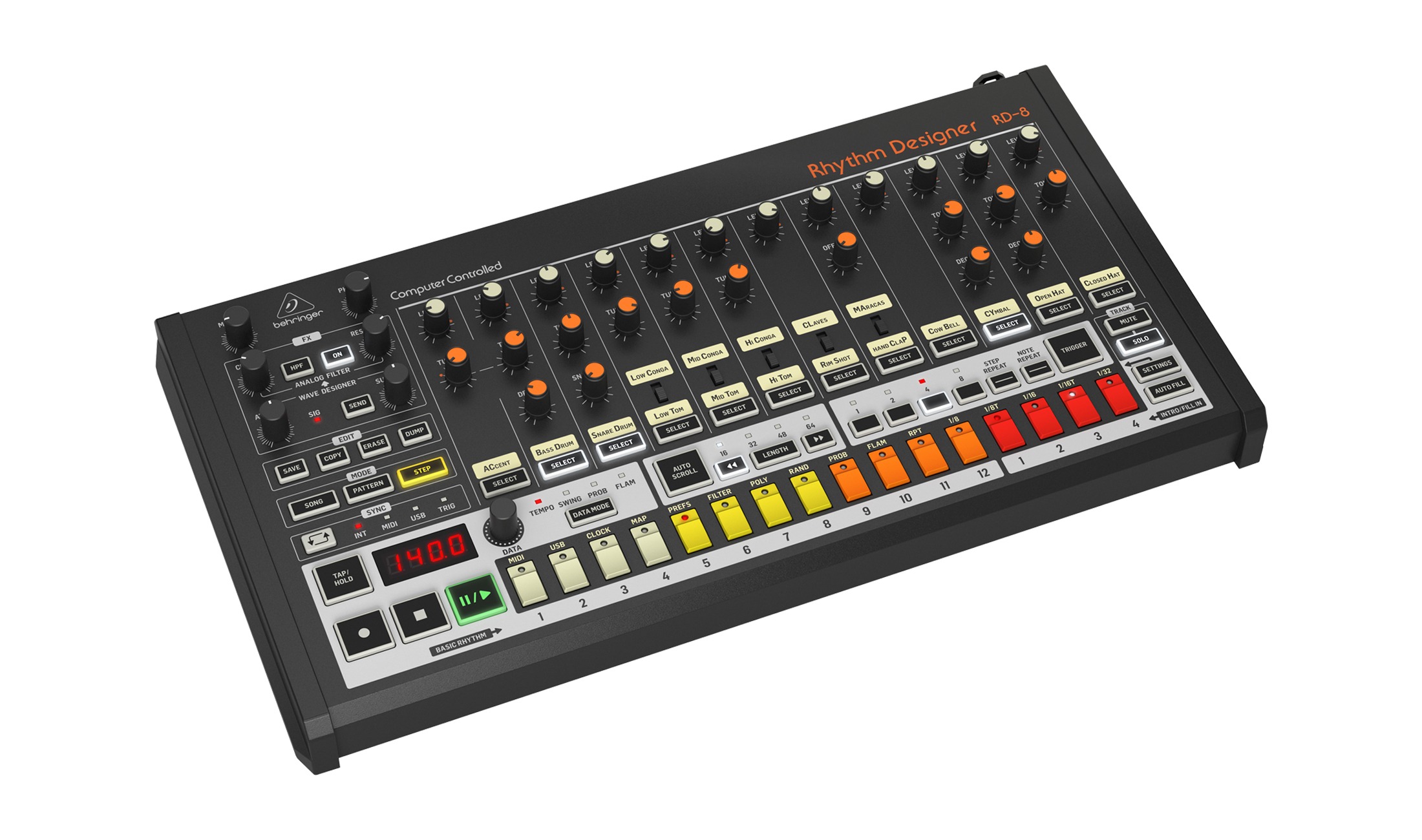 Behringer RD-8 Test: Die TR-808 ist wohl die ikonischste aller Drum Machines und hat durch ihren Einfluss auf unzählige Musikproduktionen längst Legendenstatus erreicht. Klar liegt das vor allem am großartigen Sound der voll analogen Rumpelkiste, doch Roland nahm die 808 wegen enttäuschender Verkaufszahlen bereits wenige Jahre nach Veröffentlichung im Jahr 1981 wieder vom Markt. Musikschaffende weltweit erkannten erst danach das Potenzial des bunten Riesen und so wuchs in der Szene der Wunsch nach einer Neuauflage. Heute, 39 Jahre später, hat das Warten ein Ende und die Gearnerds freuen sich – nur Roland nicht, denn die Neuauflage ist mal wieder von Behringer.