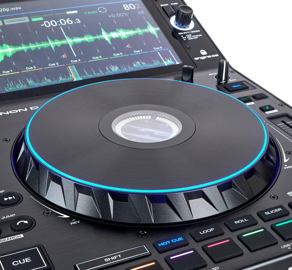 Nach dem Laden eines Tracks per Wischgeste auf dem schnell und exakt reagierenden Touchscreen oder durch Drehen und Drücken des neben dem Bildschirm platzierten Encoders erscheinen zwei Wellenformen und zahlreiche weitere Songinformationen im Display. Der neue Touchscreen blendet aufgrund seiner beeindruckenden Größe alle Parameter gut sichtbar ein, sodass man stets die Übersicht behält.