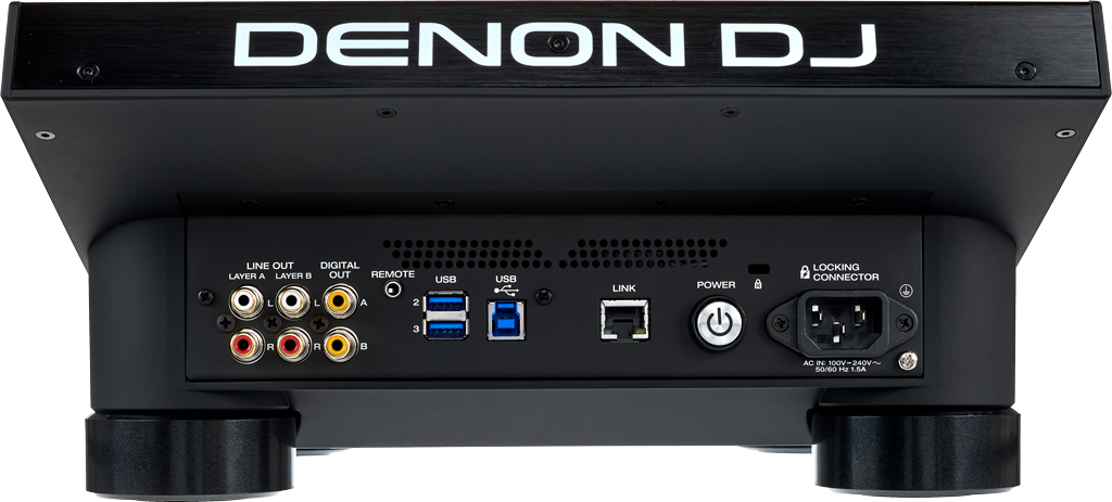 Auf der Rückseite des SC6000 unterhalb des Displays befinden sich die zahlreichen analogen und digitalen Schnittstellen. Für beide Layer gibt es je einen analogen und einen digitalen Ausgang und ein USB-B-Port dient zur Kontaktaufnahme mit einem Computer. Per Ethernet-Link-Buchse kann mit weiteren SC-Playern und dem X1850 Prime Mixer kommuniziert werden. Die Netzwerkverbindung erlaubt die Nutzung gemeinsamer Datenträger und kann zur Synchronisation von Songs und Effekten genutzt werden. Insgesamt drei USB-A-Anschlüsse und ein SD-Kartenslot ermöglichen die Zuführung mobiler Datenträger.