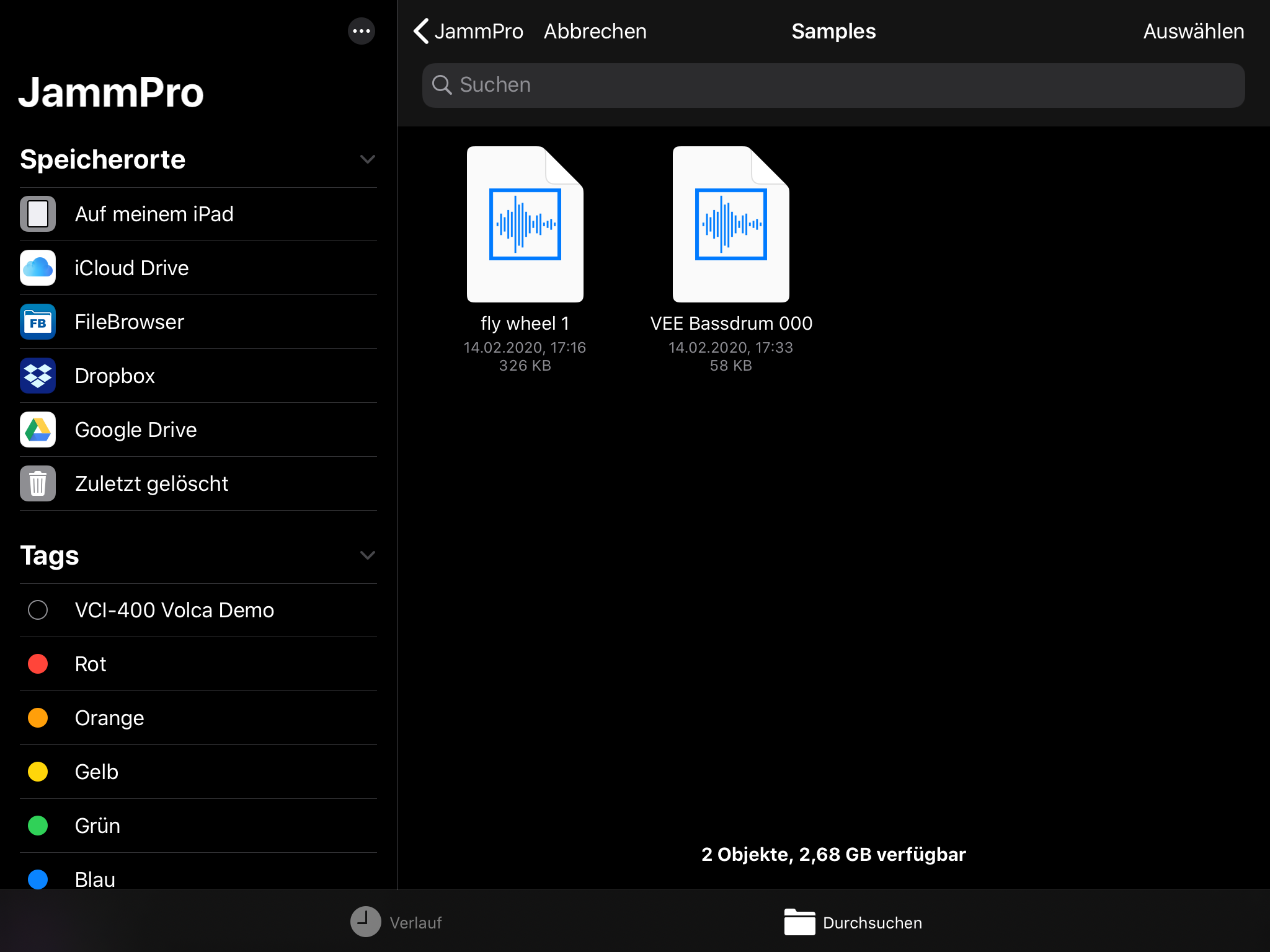 Per Importfunktion lassen sich eigene Samples in Jamm Pro nutzen.