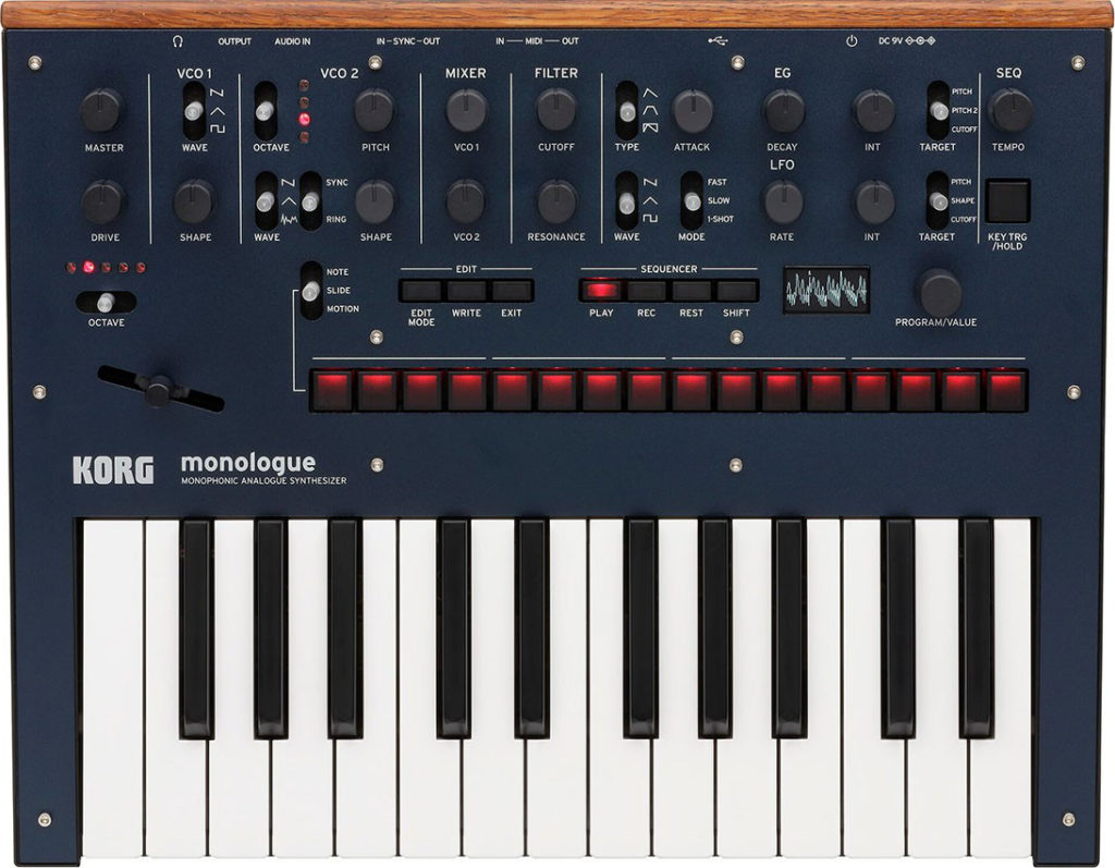 Der Korg Monologue ist ein monophoner analoger Synthesizer, der auf der Technik des Korg Minilogue aufbaut und dabei noch einige Erweiterungen wie eine analoge Drive Sektion oder ein 16-Step Sequenzer mit Automation bietet. Wurde beim kleinen Bruder des Minilogue gespart oder ist er mehr als nur Spielzeug? Und kann er mit seiner Ausstattung Konkurrenz für MicroBrute und TB303 Clones sein?