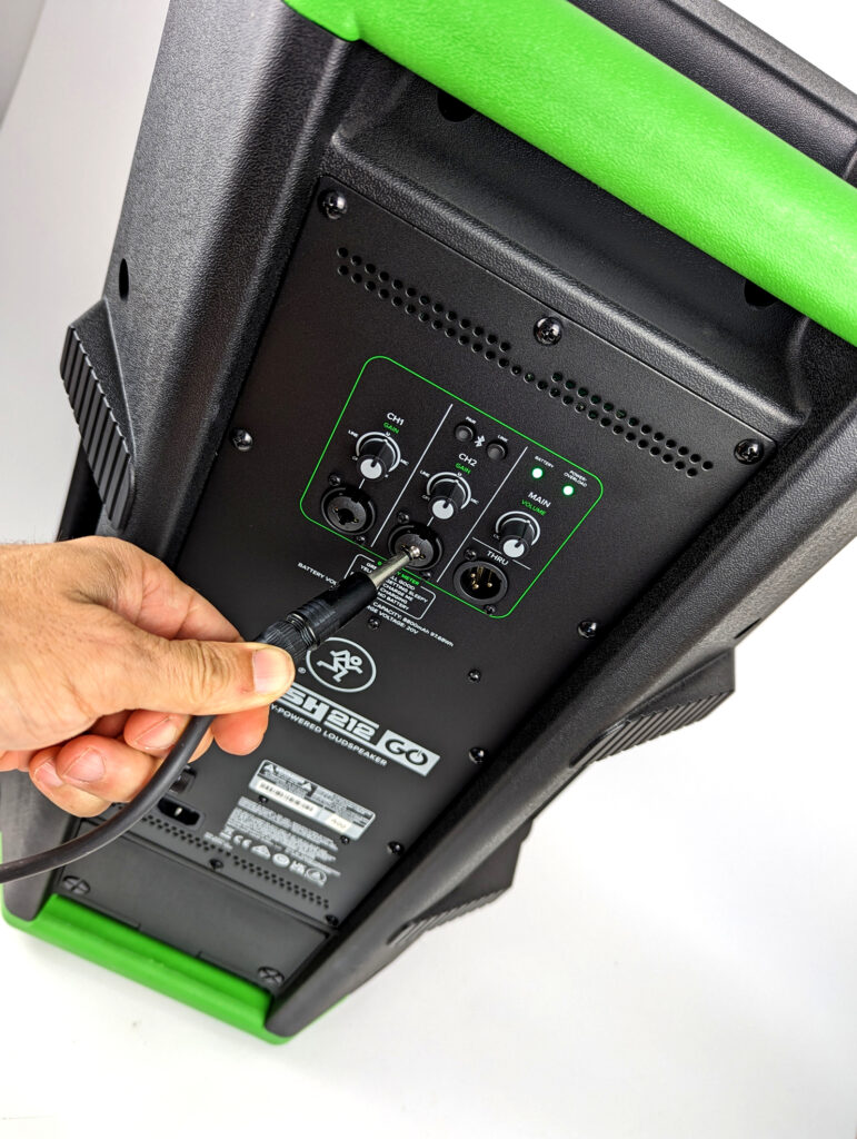 Auf der Rückseite des Mackie Thrash212 GO befindet sich das Anschlusspanel. Hier stehen zwei Kanäle mit Combo-Anschlüssen für Line-Pegel-Zuspieler oder Mikrofone parat. Die Eingangssignale beider Kanäle lassen sich per Gain-Drehregler individuell kontrollieren. Ein zusätzlicher Stereoeingang erlaubt die drahtlose Zuspielung von Signalen via Bluetooth. Einen Pegelregler für diesen Eingang gibt es nicht, die Anpassungen erfolgen im jeweiligen Zuspieler.