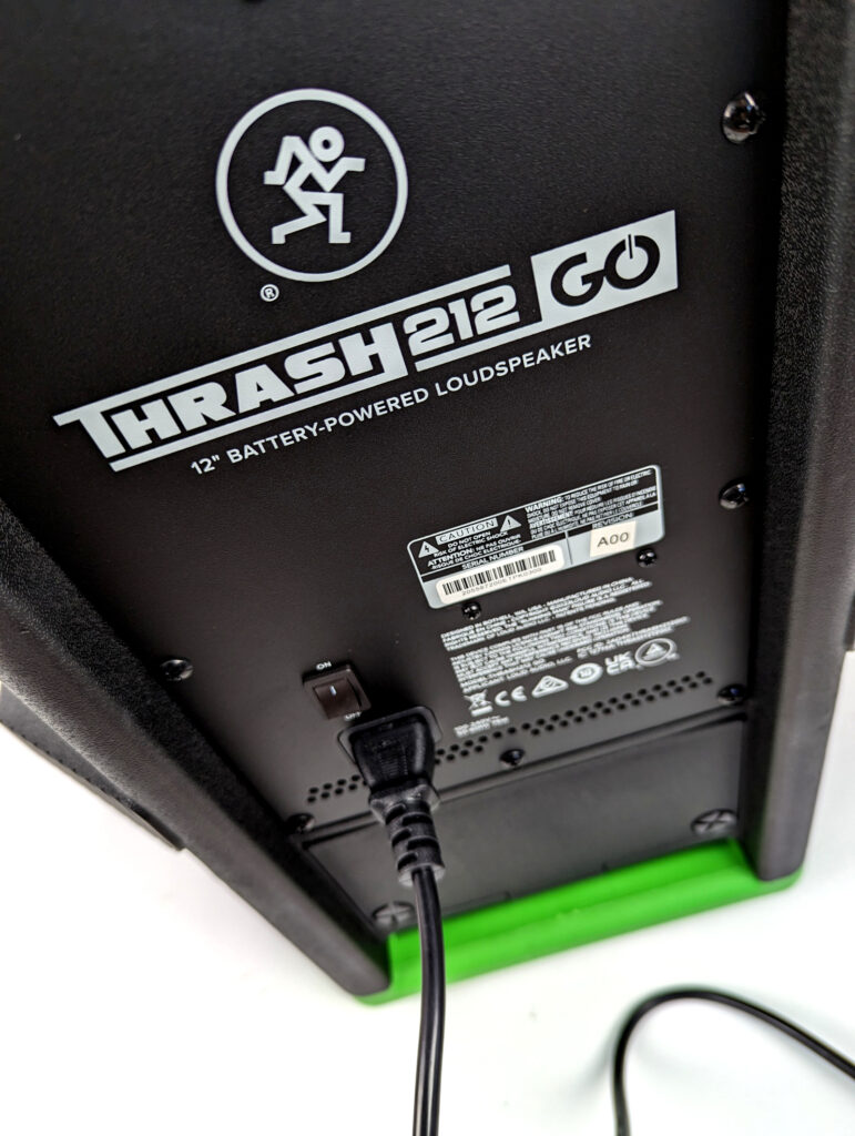 Mackie hat den Akku auf der Rückseite des Thrash GO hinter einer Abdeckung platziert. Zur Entnahme des Akkus lässt sich die Abdeckung mit einer Münze (oder ähnlichem Gegenstand) entfernen, ein Spezialwerkzeug wird nicht benötigt. Praktisch: Die Box kann auch ohne Akku betrieben werden, wodurch es keine Limitierung bei der Einsatzzeit gibt.