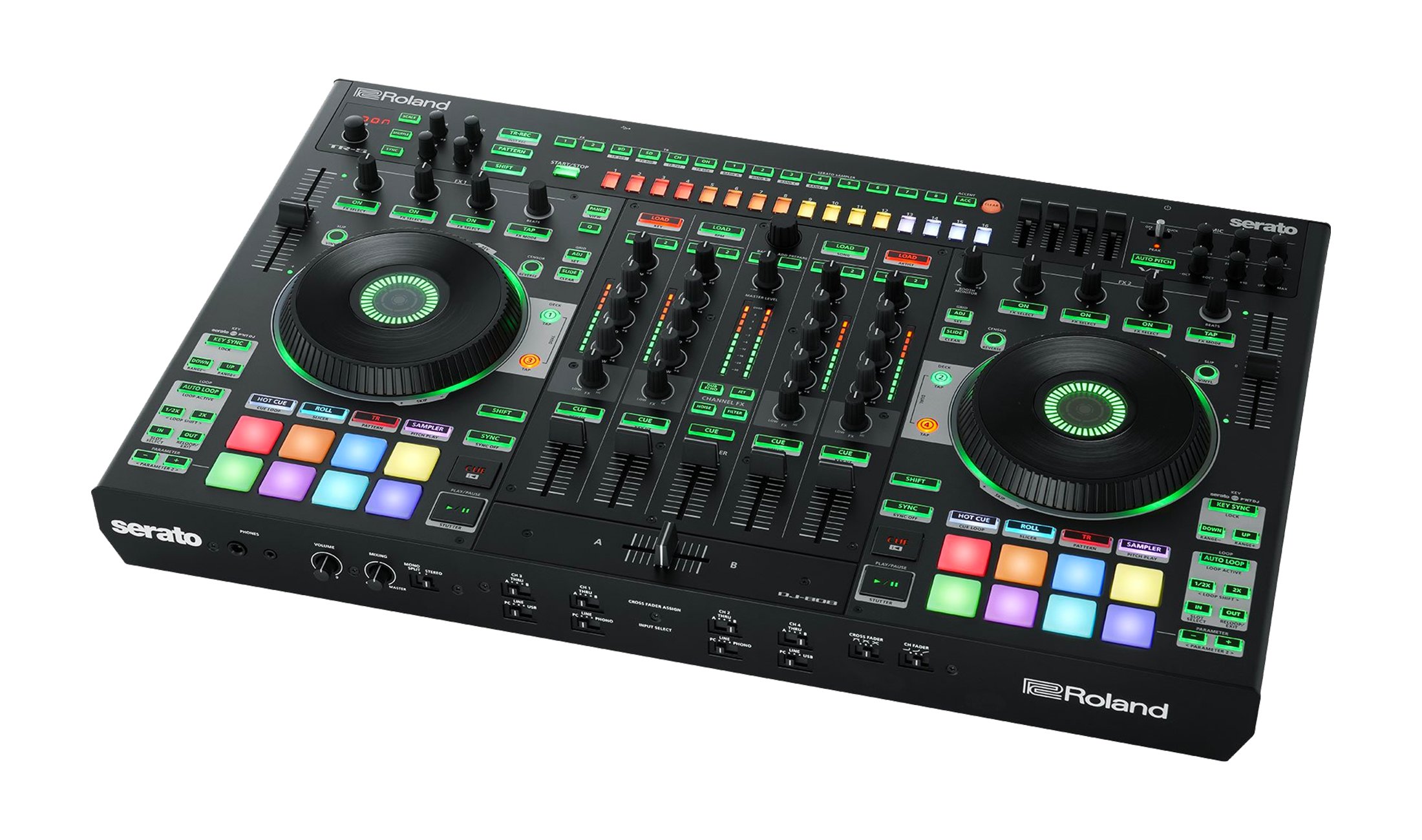 Controller gibt es viele und deren Features ähneln sich. Vier Decks? Serato DJ? Stand Alone Mixer-Funktion? Kann jeder. Mit eingebauter Drummaschine kommt nur der DJ-808 von Roland.  Ein Testbericht.