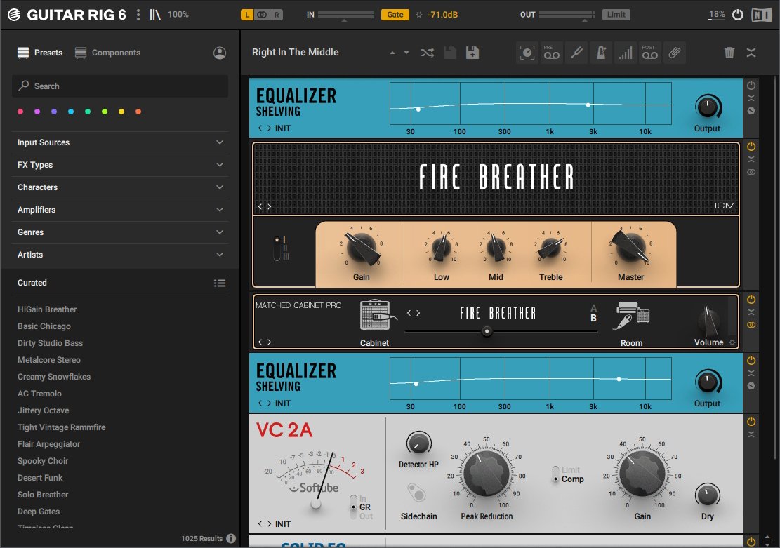 In Version 6 kommt auch die neue Circuit-Modelling-Technologie zum Einsatz, die einen noch realistischeren Sound verspricht. Außerdem lassen sich die Effekt-Plugins wie zum Beispiel Drive, die Solid-Mix-Series, die Vintage-Kompressoren, Transient Master und das Crush- und Mod-Pack nun auch direkt in Guitar Rig nutzen und einsetzen, damit ist Guitar Rig 6 noch wesentlich flexibler geworden als die Vorgängerversion.