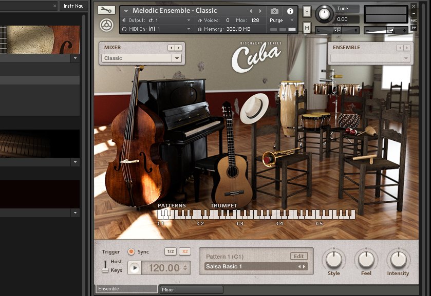 Und noch eine weitere Kontakt-Library ist in Komplete 13 nun freigeschaltet. Cuba bietet lateinamerikanische Rhythmen und afrokubanischen Sound mit traditionellen Instrumenten und perkussiven und melodischen Ensembles und Patterns, mit denen die Erstellung eines Hintergrund-Instrumental-Tracks leicht von der Hand geht. Die Instrumente wurden auch hier detailreich gesampelt und klingen deshalb ziemlich realistisch.